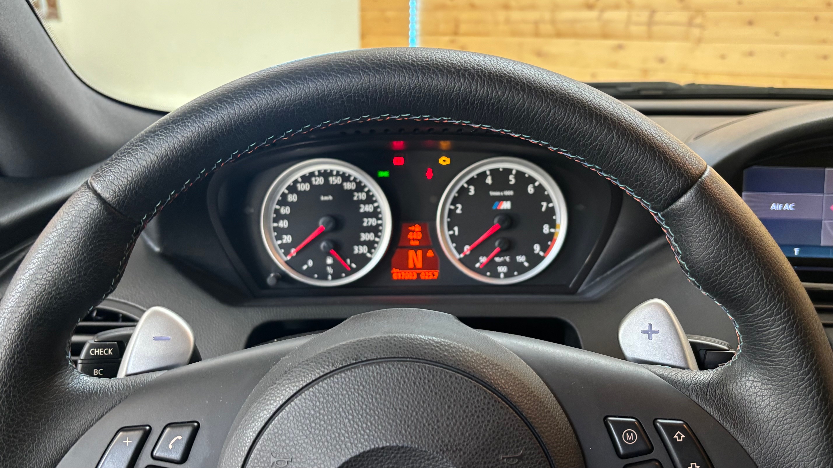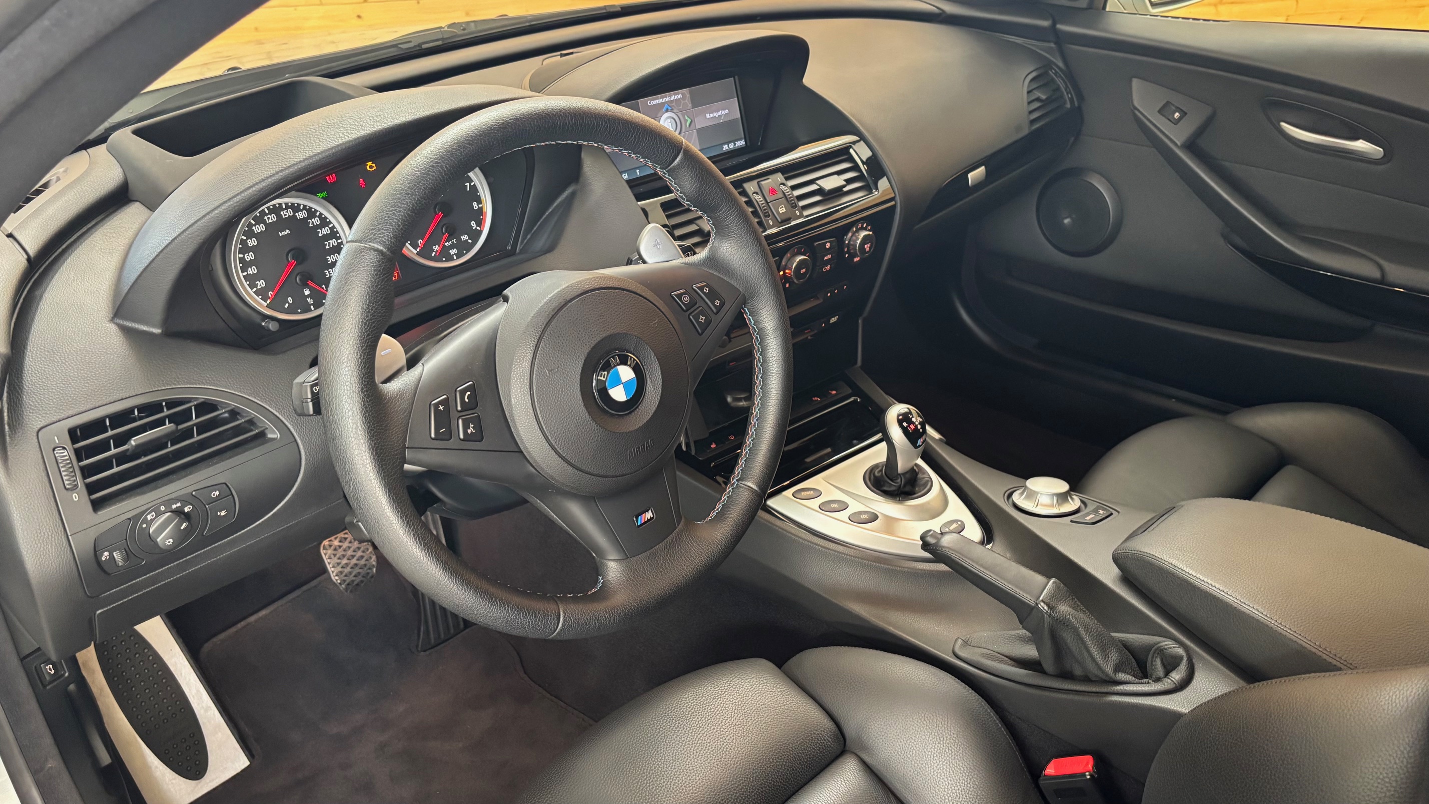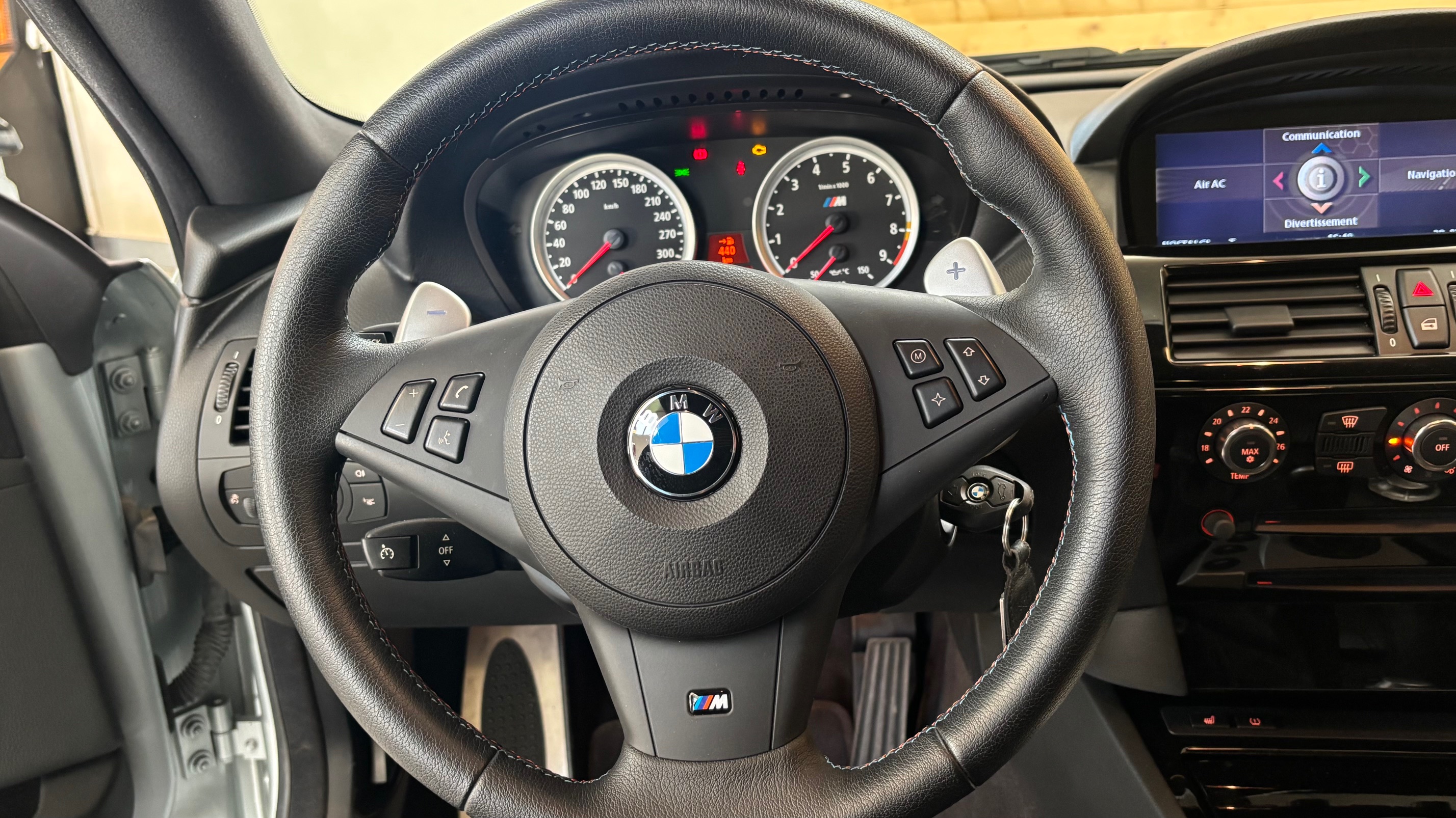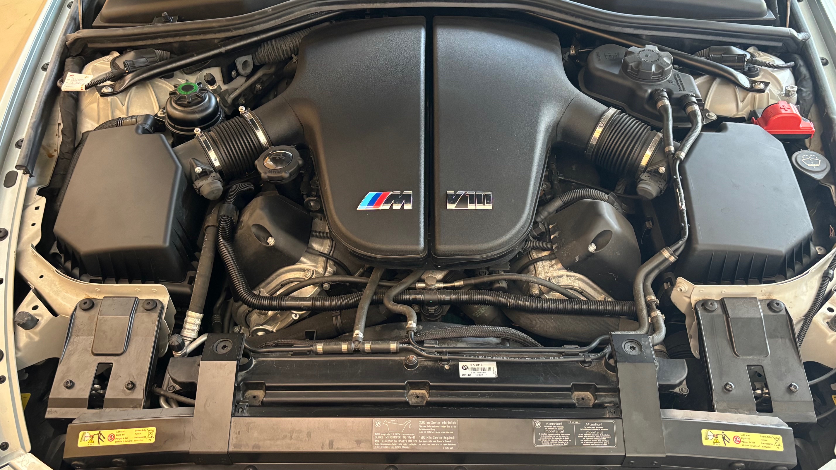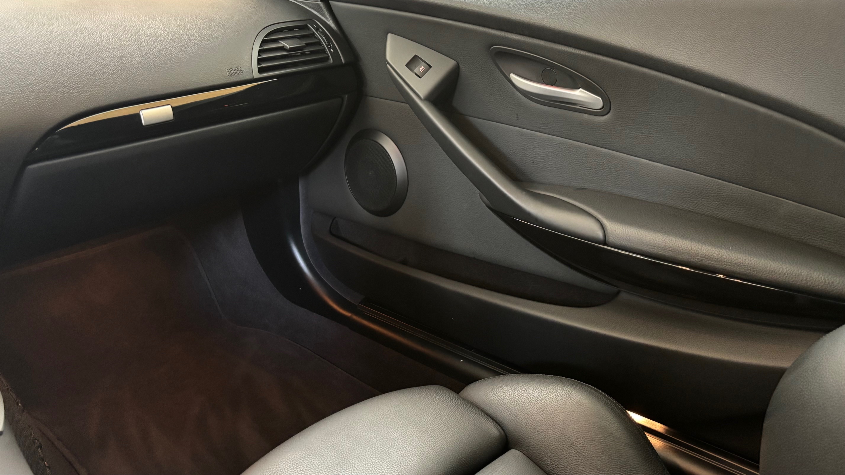 Mais la véritable magie de cette M6 se cache sous son long capot. Fière de son engagement en Formule 1 à l’époque, la division Motorsport y a glissé un véritable chef-d’œuvre d’ingénierie : le spectaculaire moteur V10 atmosphérique de 5,0 litres, le fameux S85. Délivrant 507 chevaux à un régime vertigineux de 7 750 tr/min, ce bloc est associé à la boîte de vitesses séquentielle SMG à 7 rapports. Une simple pression sur la touche « M » du volant permet de libérer la totalité de la cavalerie offrant des vocalises métalliques stridentes et des montées en régime ahurissantes qui marquent à jamais ceux qui en prennent le volant.