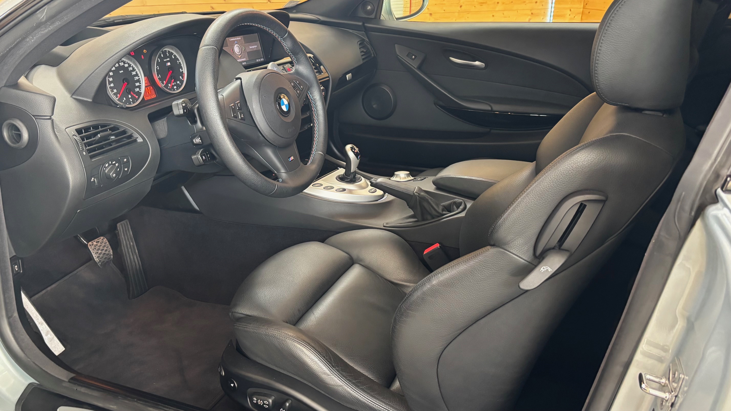 C’est bien ce modèle déjà iconique du constructeur Munichois que nous vous proposons aujourd’hui. Immatriculée par la concession Lyonnaise de la marque pour la première fois le 13 décembre 2005, la M6 est vendue à son premier propriétaire le 20 avril 2006. Il la revend le 21 décembre 2016 à son propriétaire actuel, après avoir parcouru environ 10.000 kms en 10 ans. Ce dernier parcourt un peu plus de 6.000 kms en deux ans avec en lui réservant une utilisation « plaisir week-end », puis la conserve scrupuleusement dans le garage chauffé de sa villa, jusqu’à ces dernières semaines, ne voulant se résoudre à la vendre tellement il en est amoureux. Ayant acquis de nombreux autres véhicules depuis, il accepte de la sortir pour la faire intégralement réviser, changer les 4 pneus et faire le contrôle technique. C’est donc une véritable « time capsule », exceptionnelle, que nous mettons en vente, dans un état et à un kilométrage ou nous n’avons trouvé aucun modèle comparable à vendre dans le monde. Me remettant les clés, il me confia: » tu vas voir , elle sent toujours le neuf » … Tout est dit…