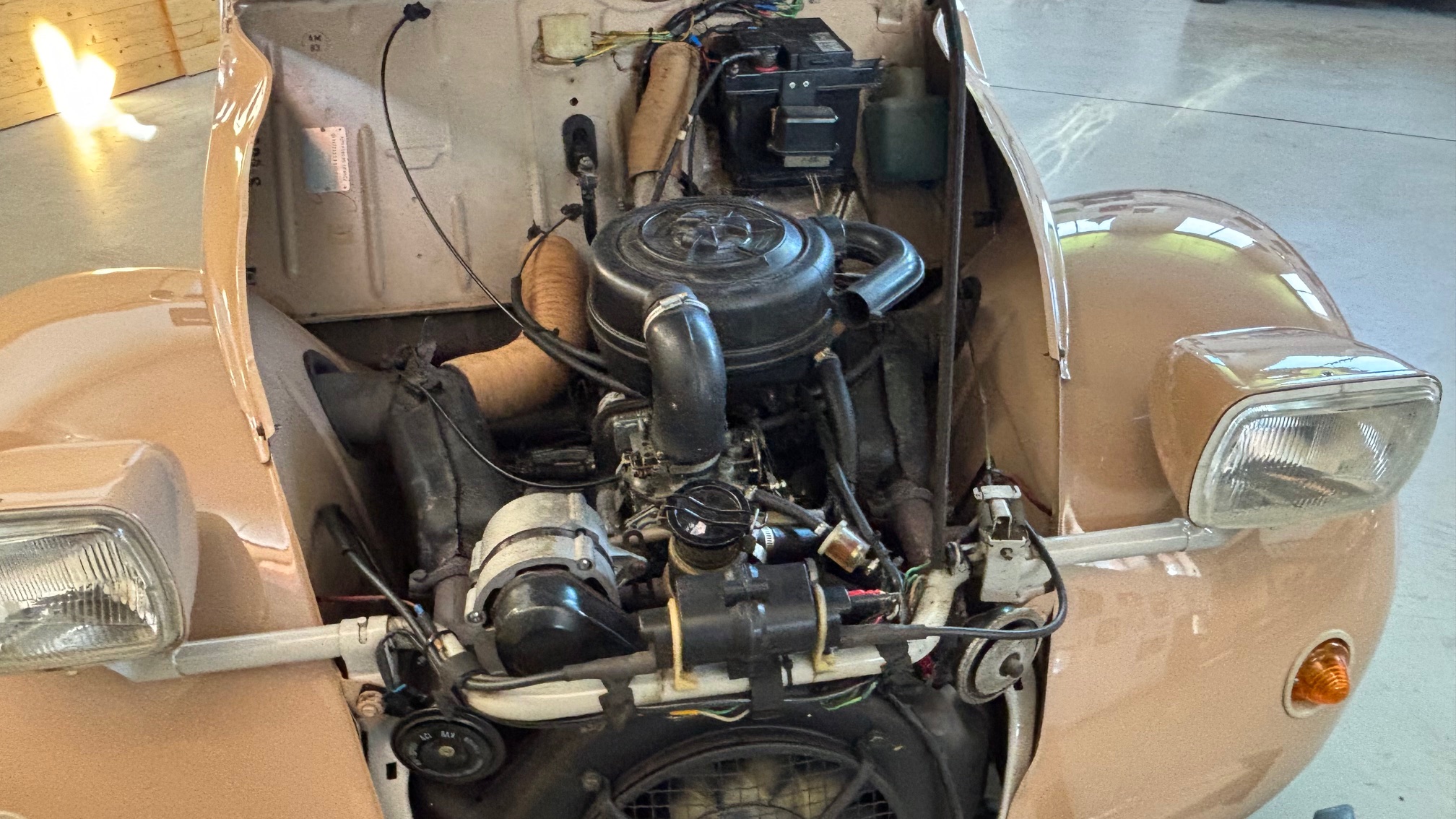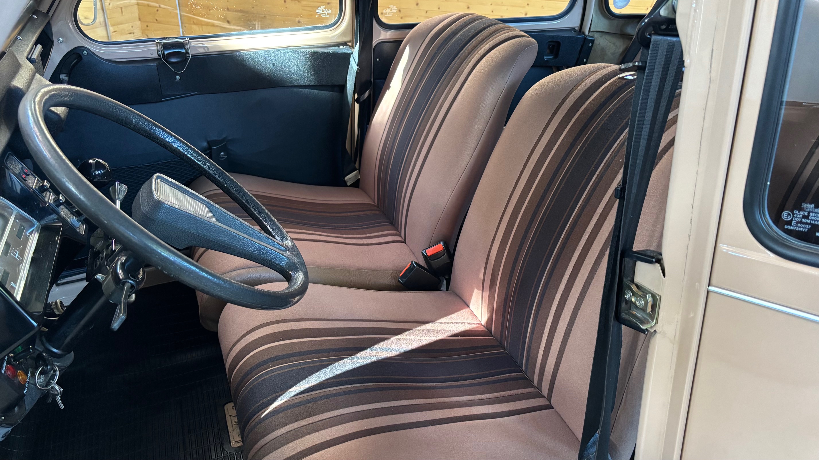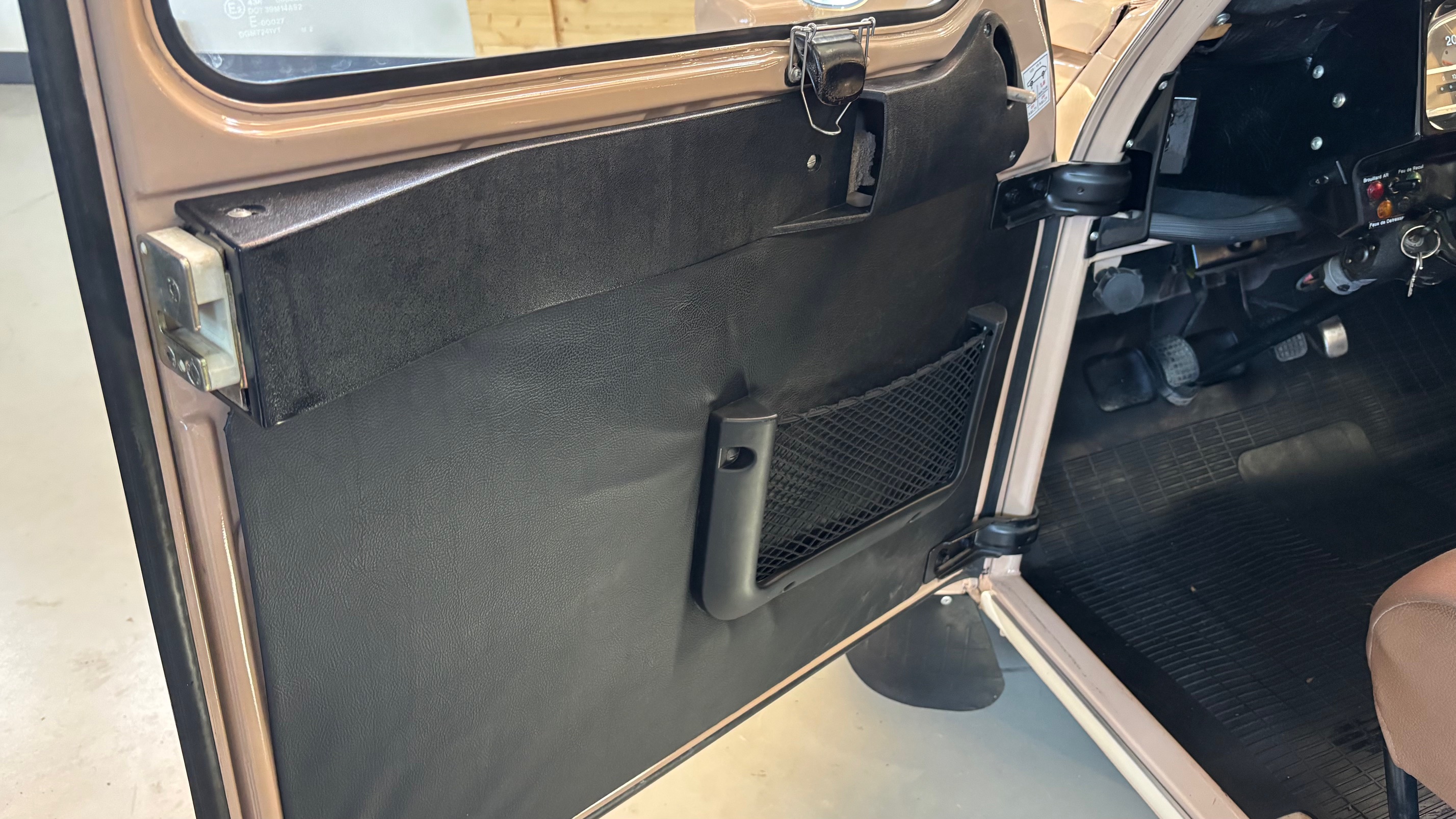 Lors du changement de main en 2014, le nouveau propriétaire fit faire un voile de peinture conforme à la sortie d’usine beige collorado, mis une capote neuve ainsi qu’une remise à niveau mécanique complète. Nous possédons toutes les factures de ces travaux. Le seul équipement qui fut rajouté est un kit « anti brouillard et feu de recul », très bien intégré, pratique et sécurisant.
