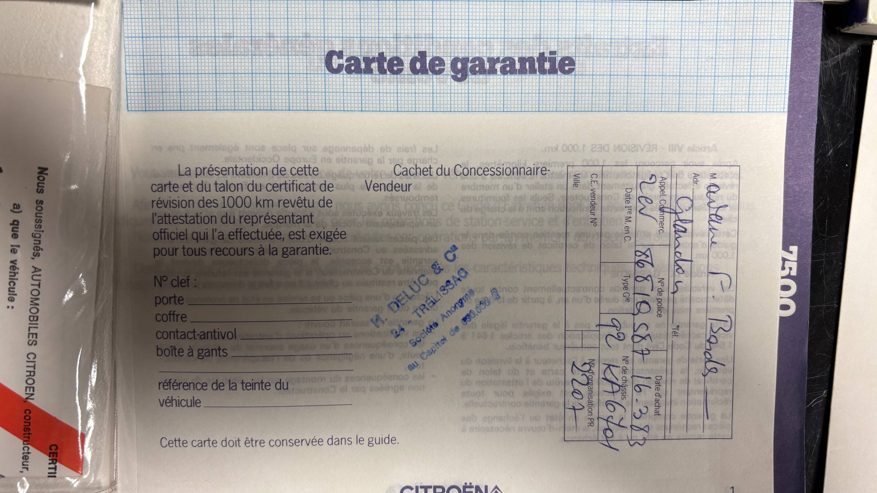 La voiture est dans un tel état, totalement exempt de corrosion, qu’elle semble sortir de chez l’agent Citroën en 1983. Nous possédons tous les documents d’origine (carnets de bord, notice d’utilisation, barré rouge, Citroën anti stop, annuaire réseau) datant de la livraison originelle et parfaitement conservés ;