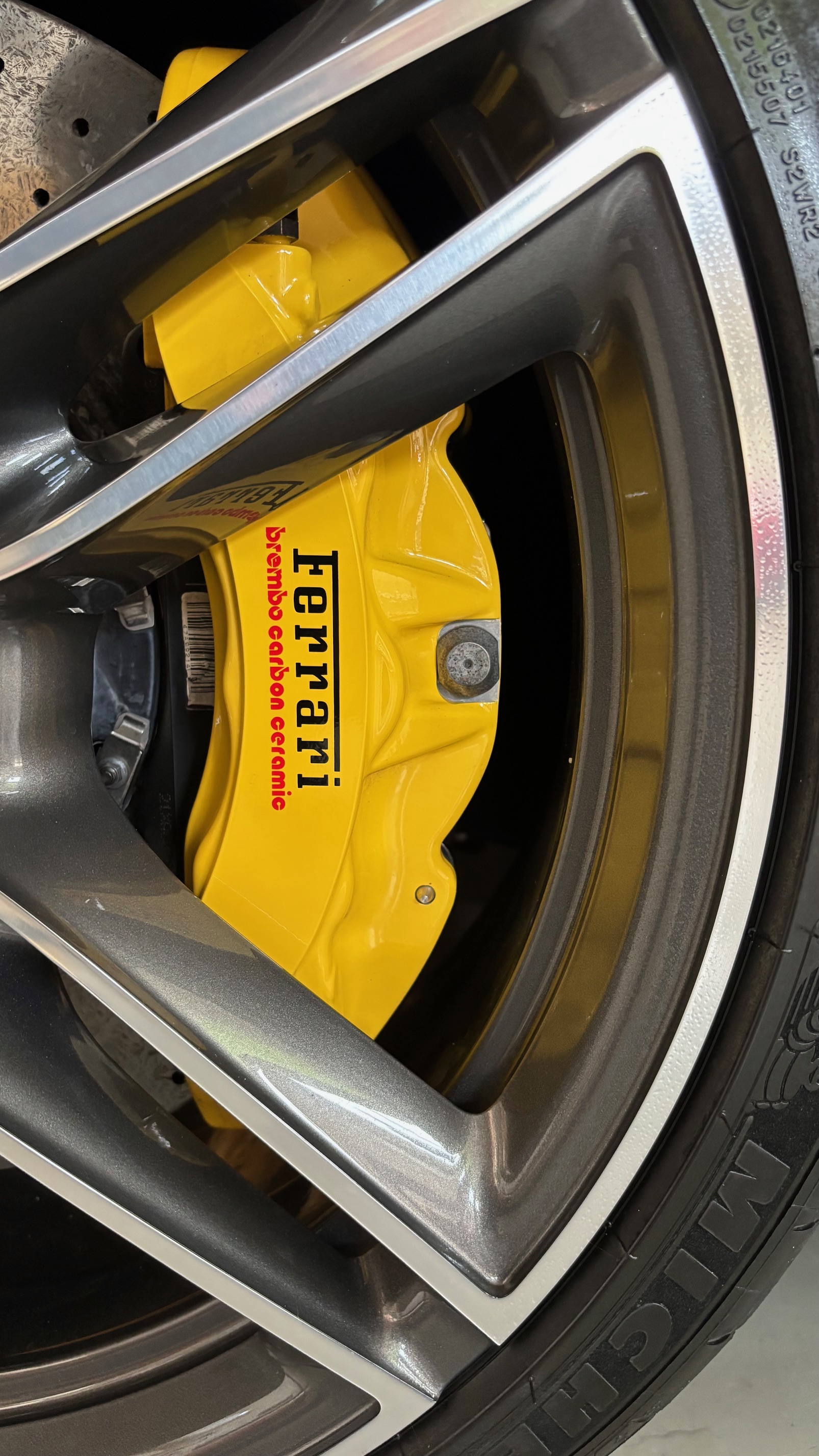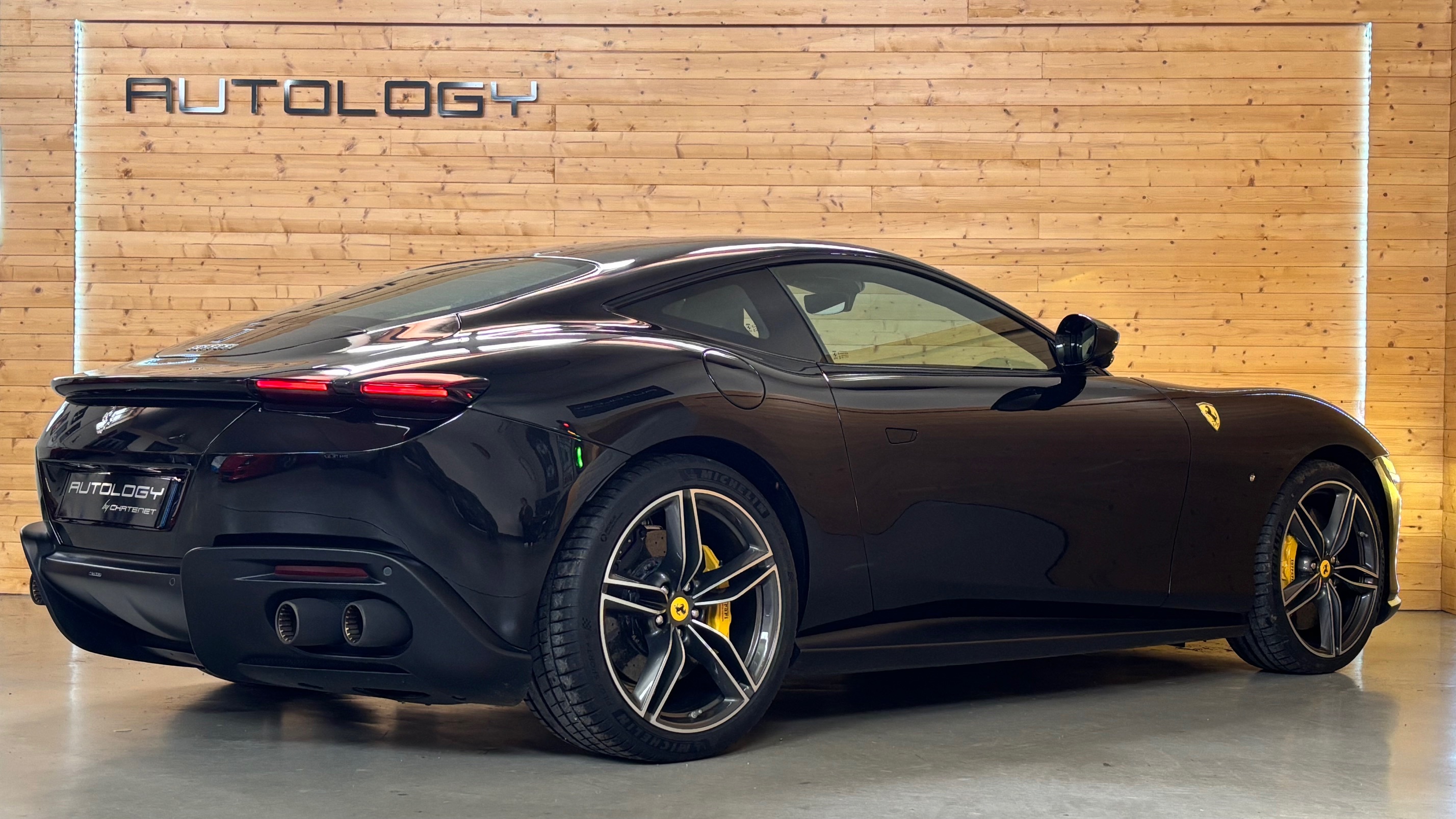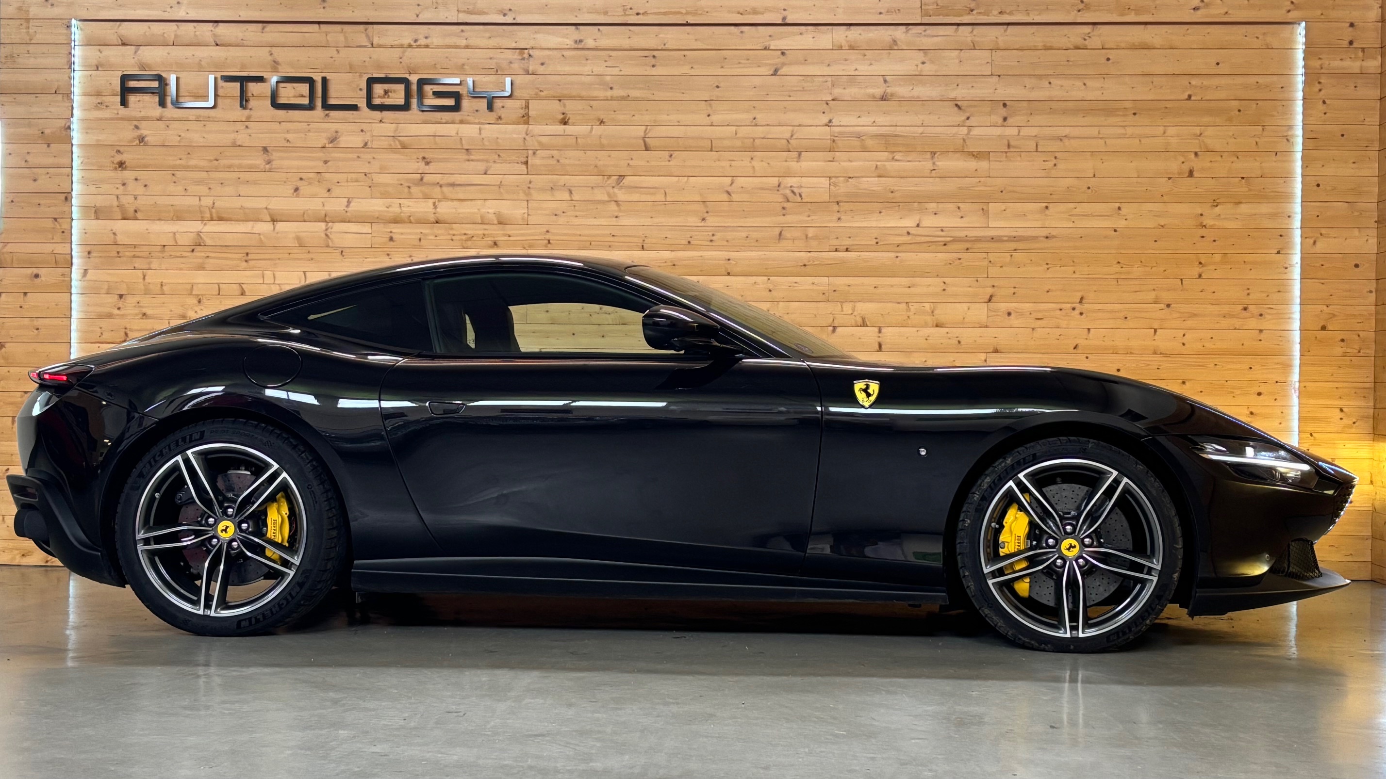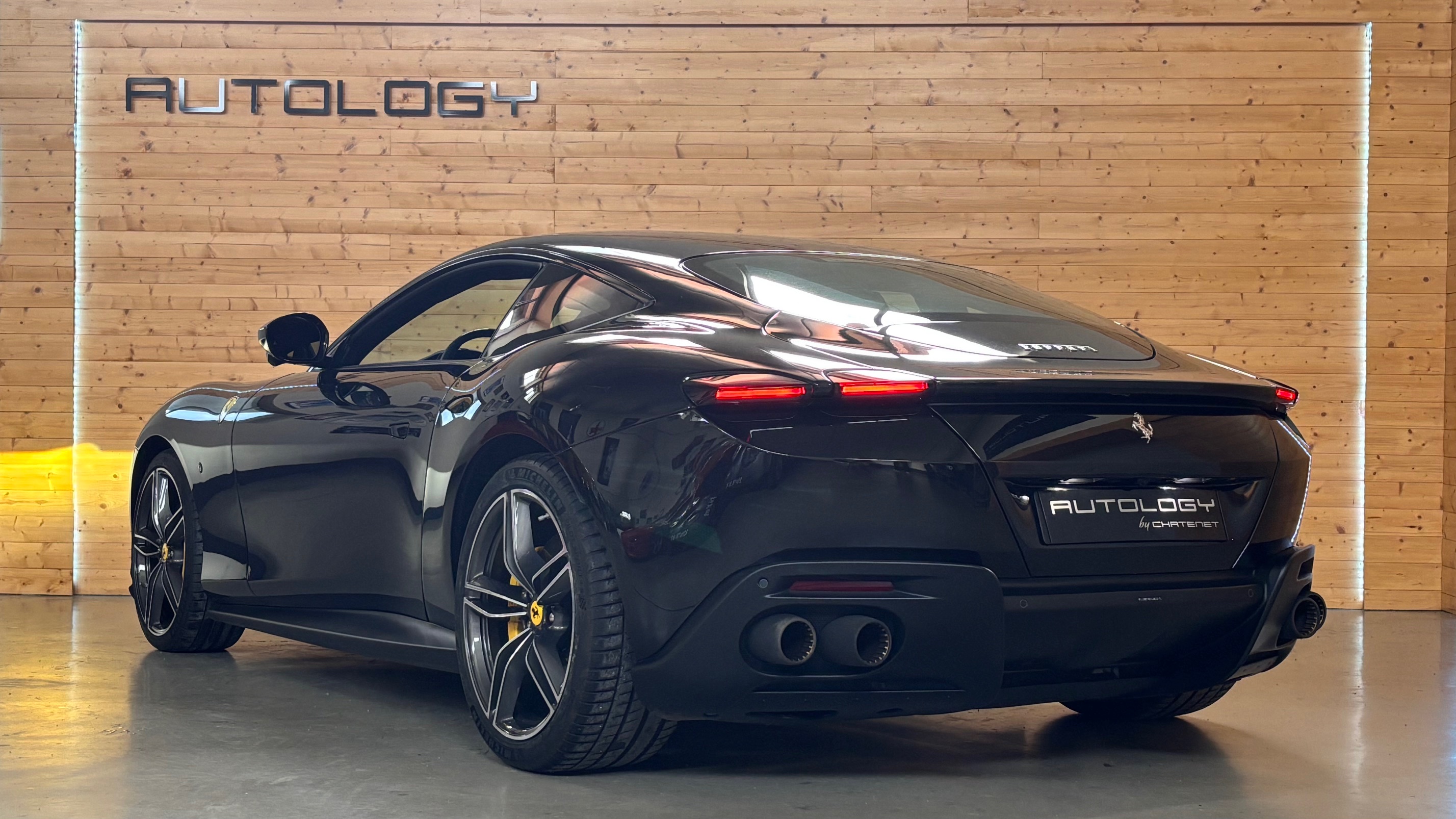 Comme toutes les Roma, elle bénéficie du programme d’entretien étendu comprenant les services, les pièces et la main d’œuvre pendant 7 ans . Le dernier vient d’être réalisé chez Ferrari Bordeaux en septembre 2025, le carnet d’entretien est totalement à jour et dûment rempli. Les quatre pneumatiques Michelin présentent un très faible niveau d’usure ( 10 à 15 % ) . La carrosserie est intégralement protégée par un efficace film PPF invisible de très grande qualité. Nous n’avons relevé aucune imperfection sur celle-ci ni sur les jantes.