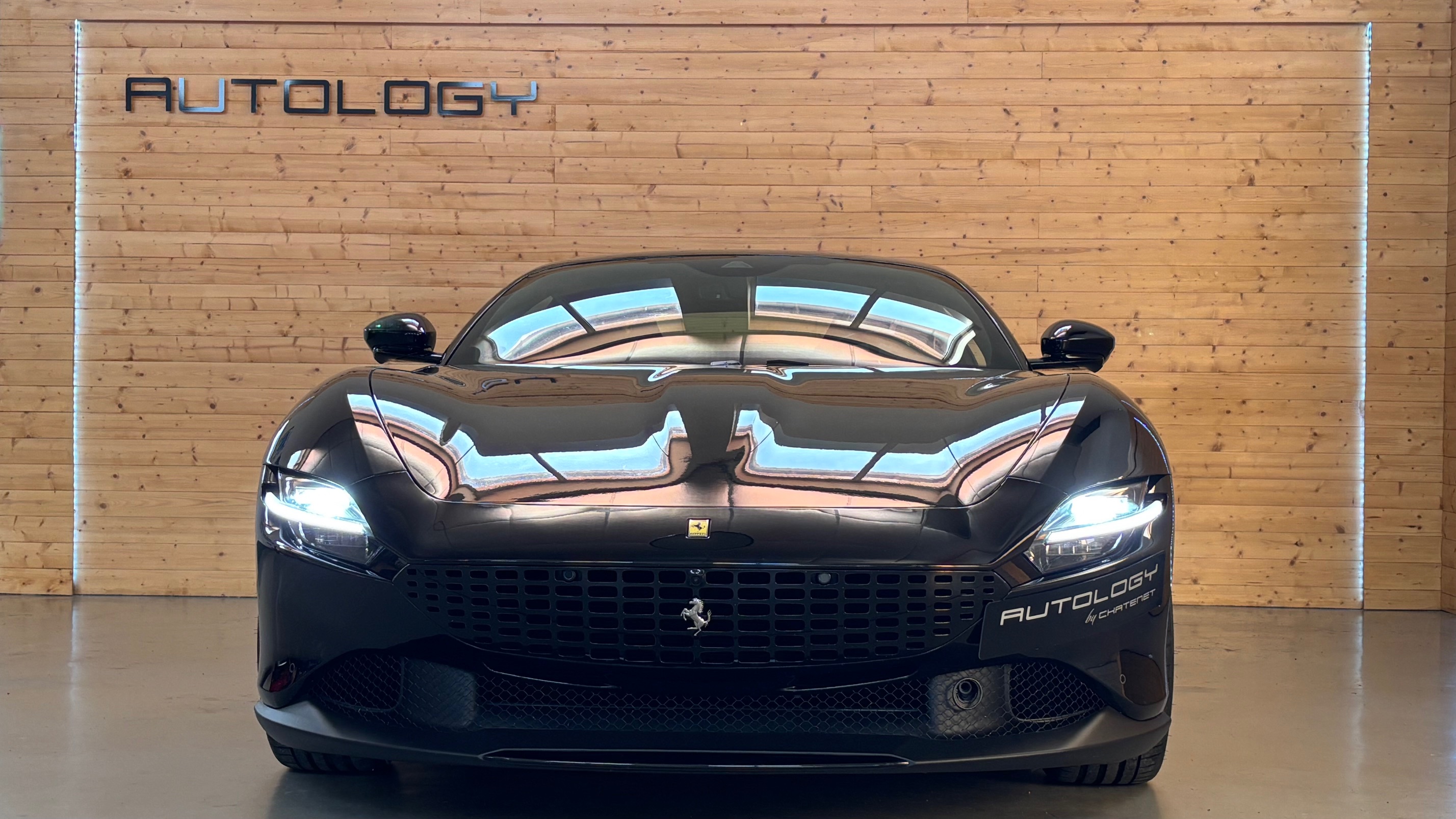 Basée sur le châssis de la Portofino de 2017, son design radicalement différent de cette dernière est inspiré de la Monza SP1 de 2018 avec sa calandre perforée inclinée vers l’intérieur du spoiler avant et, si l’on remonte plus loin dans l’histoire de la marque, il devient manifeste que la Roma est une interprétation moderne des années 60/ 70 comme LA 250 GT LUSSO, la 275 GTB ou la Daytona.
