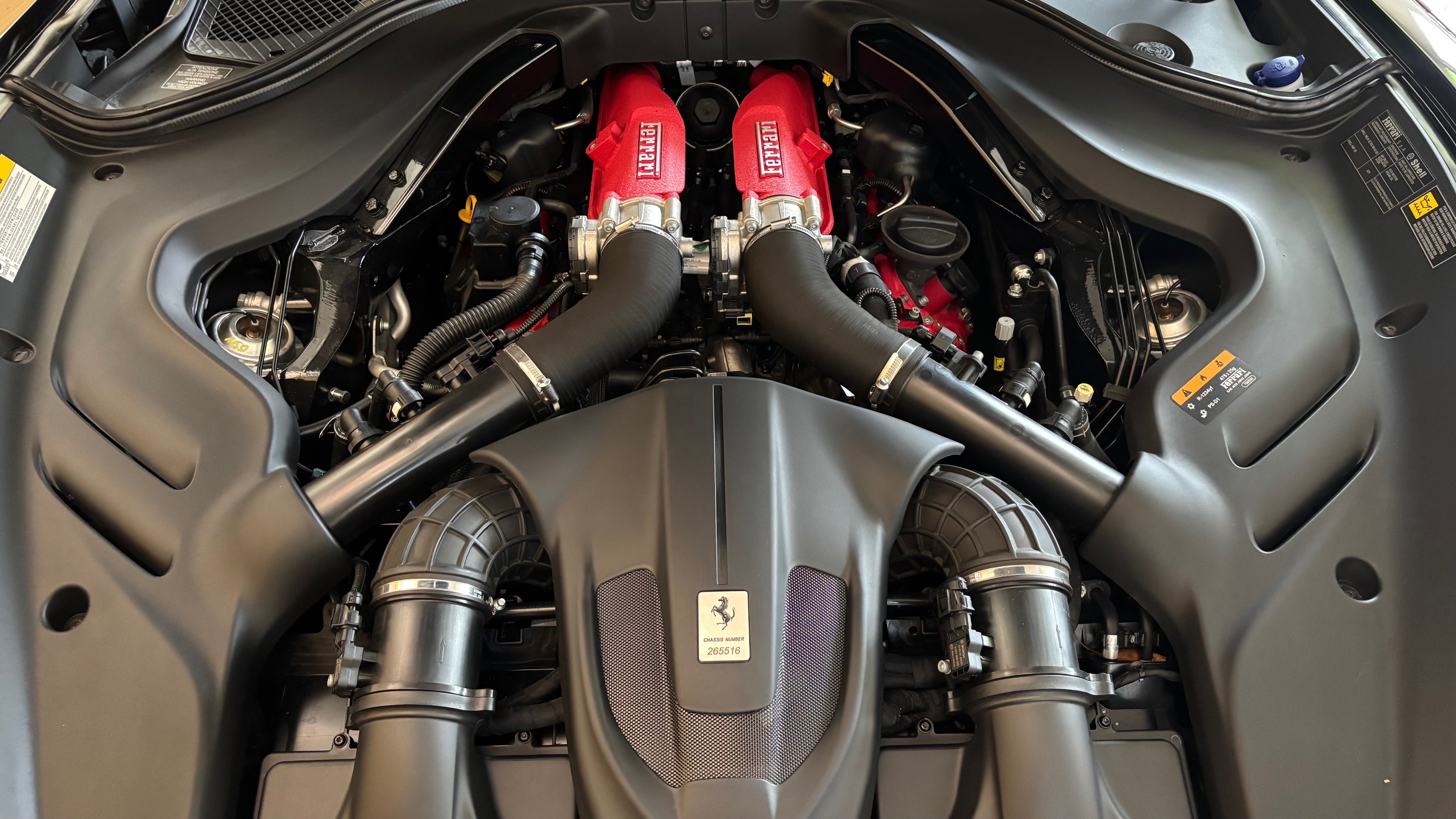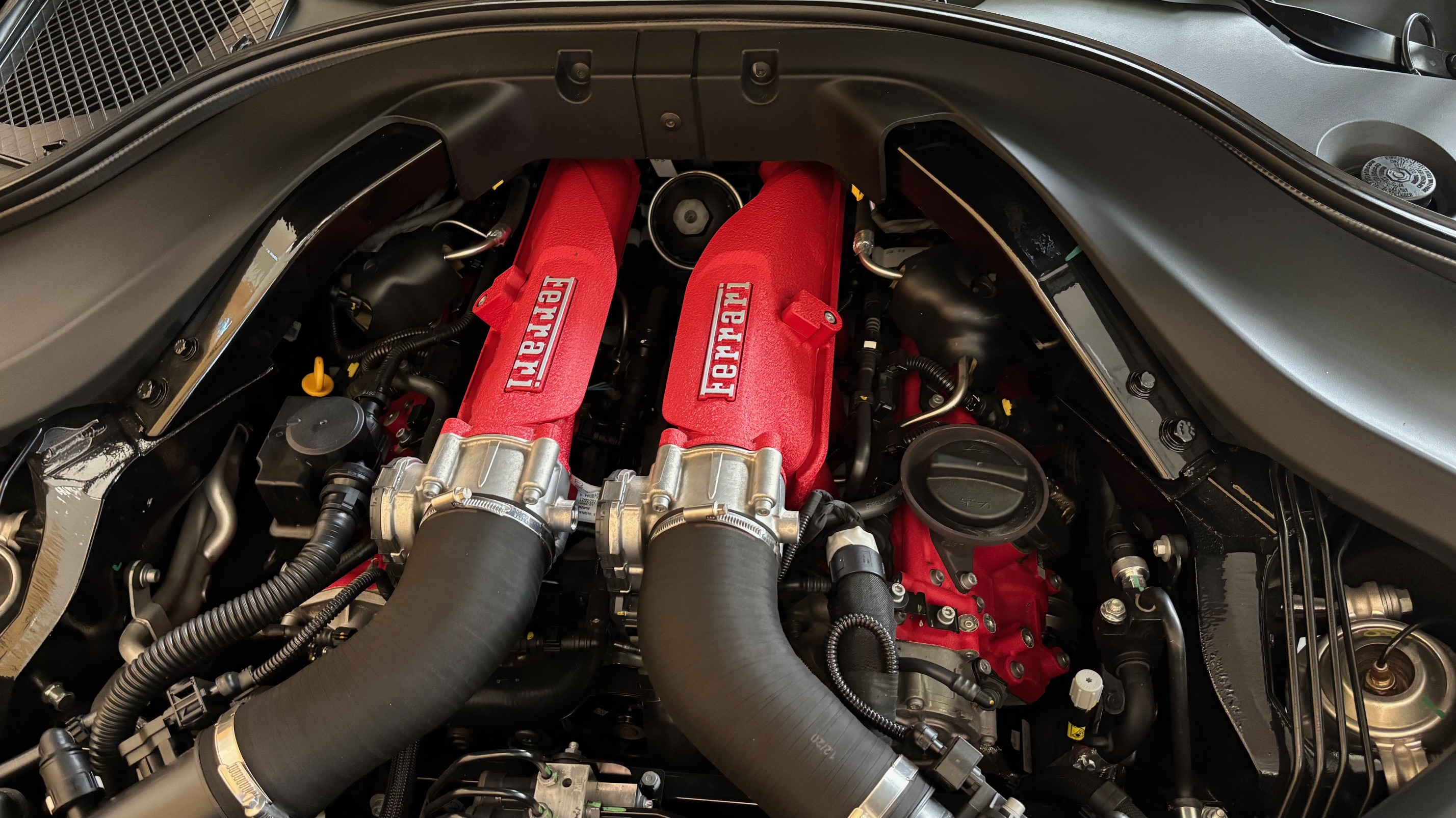 En revanche, contrairement à ses glorieuses aînées, elle n’est pas propulsée par un V12 mais par un V8 bi-turbo de 3,9l de 620 ch associé à une boîte auto de 8 rapports double embrayage, exceptionnelle de rapidité, issu de la Ferrari SF90 Stradale . Il est a noter que ce bloc a remporté le prix de « meilleur moteur « en 2016, 2017, 2018 et 2019 dans la catégorie « International engine of the year ».
