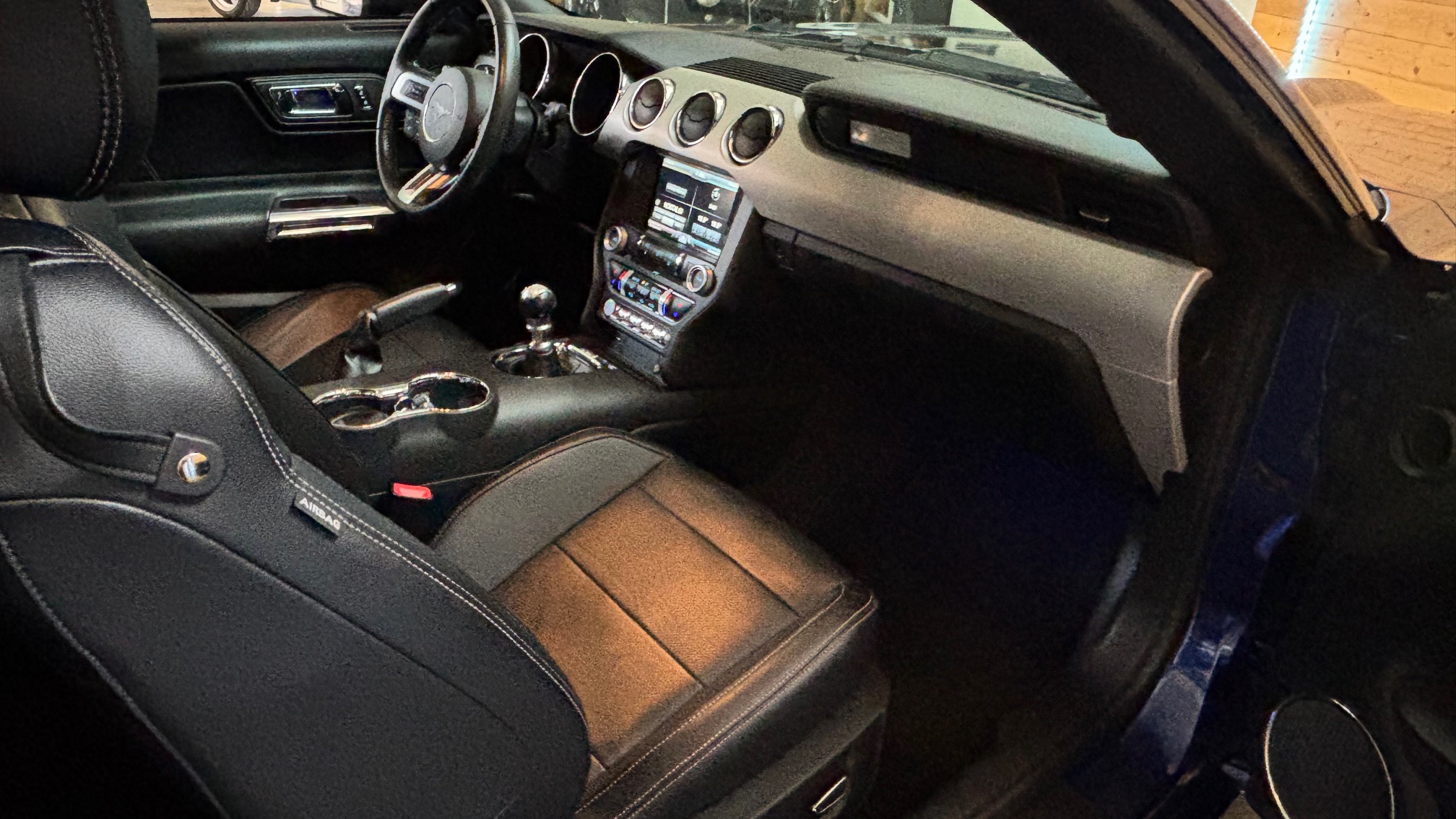 C’est bien ce modèle que nous vous proposons aujourd’hui dans une magnifique livrée « midnight blue « avec jantes noires vernies et intérieur cuir noir. Livrée neuve en Allemagne en octobre 2015, notre Mustang est équipée de toutes les options disponibles, notamment les sièges chauffants et ventilés, l’échappement sport…
