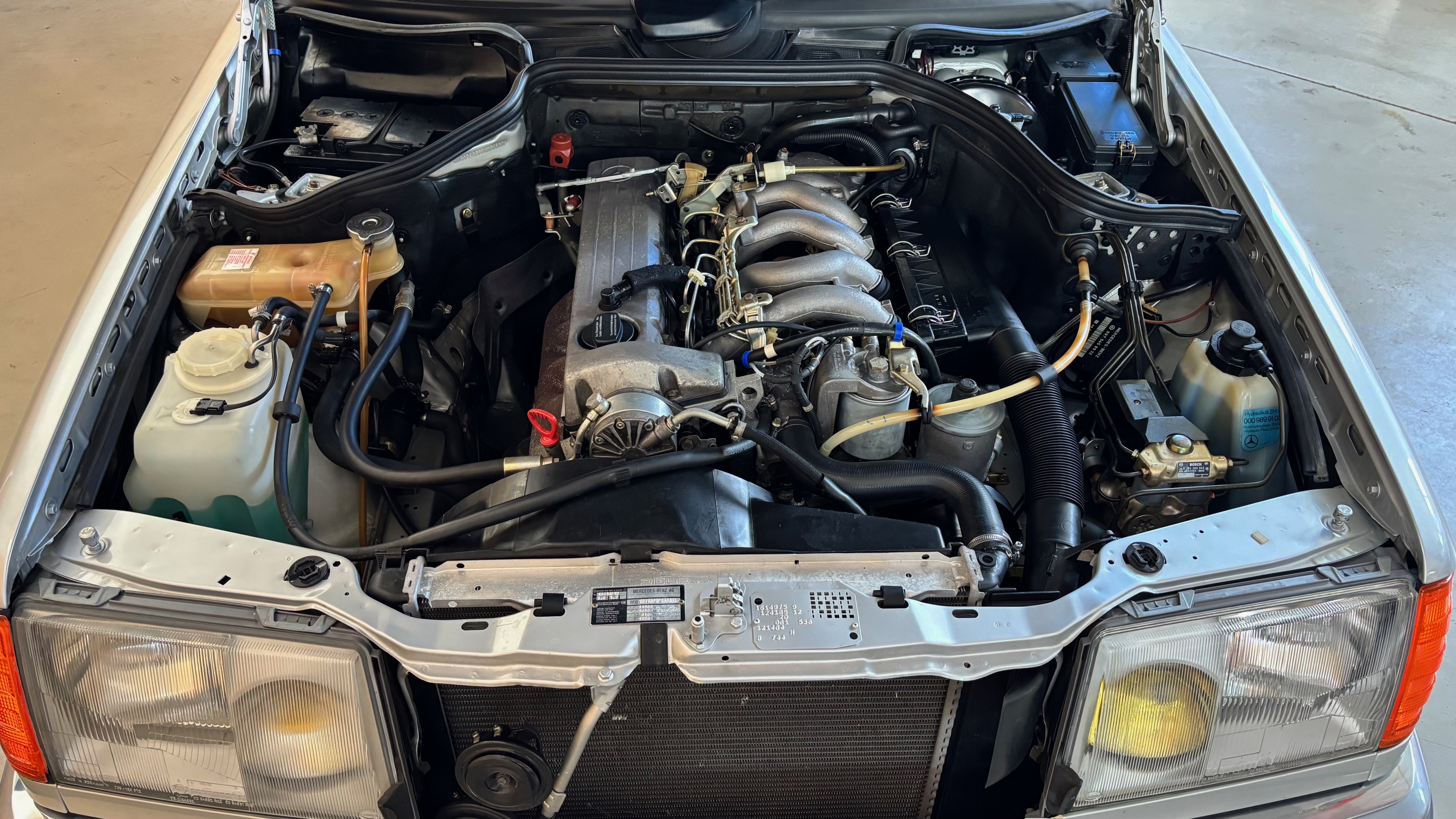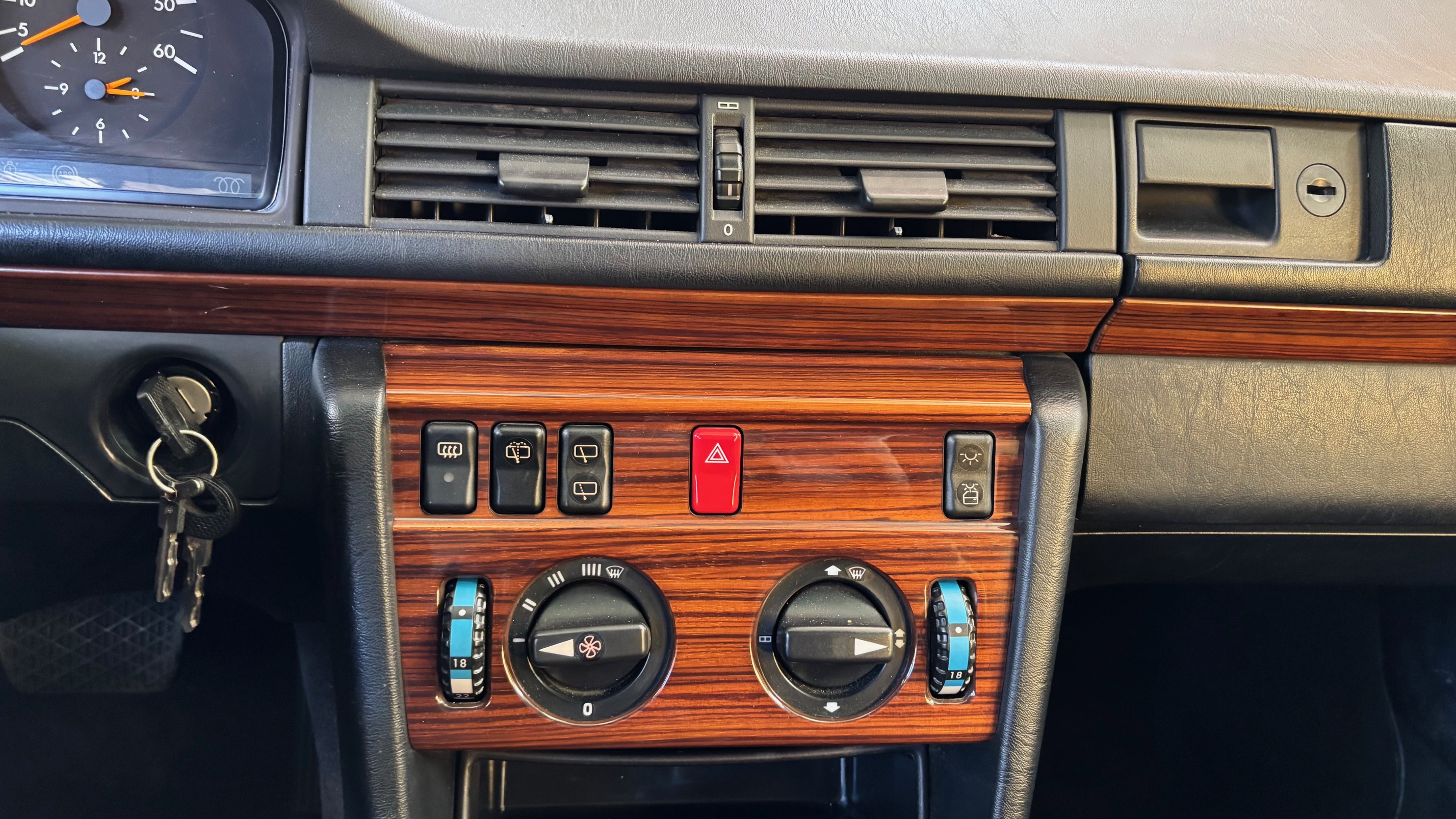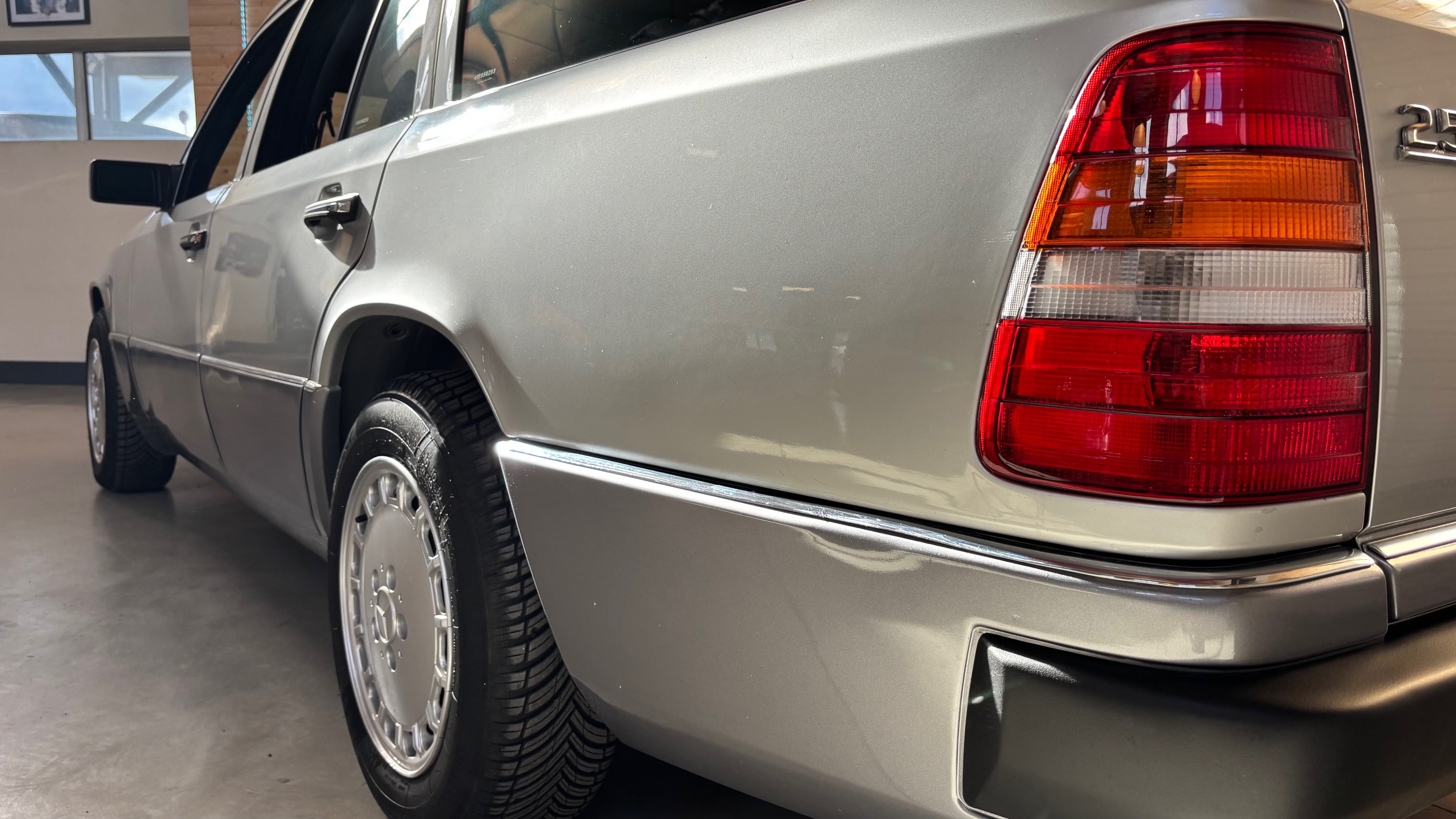 En 1989 apparait le premier restylage de la classe E, considéré par les spécialistes comme la meilleure génération, car elle a gommé les défauts de jeunesse des premières années, n’est pas encore entrée dans l’ère des économies d’échelles et de l’utilisation des matériaux recyclés (mi 1993) et bénéficie d’une finition plus flatteuse quelque soit la version. On reconnaît immédiatement cette phase 2 par ses bandeaux assortis à la teinte, sertis d’un jonc chromé, qui ceinturent la caisse. Les poignées de porte s’habillent également de chrome. A l’intérieur le bois précieux est partout : toujours sur la console centrale mais dorénavant aussi sur le bas du tableau de bord et les contre-portes. En ce qui concerne les motorisations, certaines profitent d’une augmentation de puissance, dont l’indestructible 5 cylindres de 2,5 litres, dont la puissance passe de 90 à 94 ch.