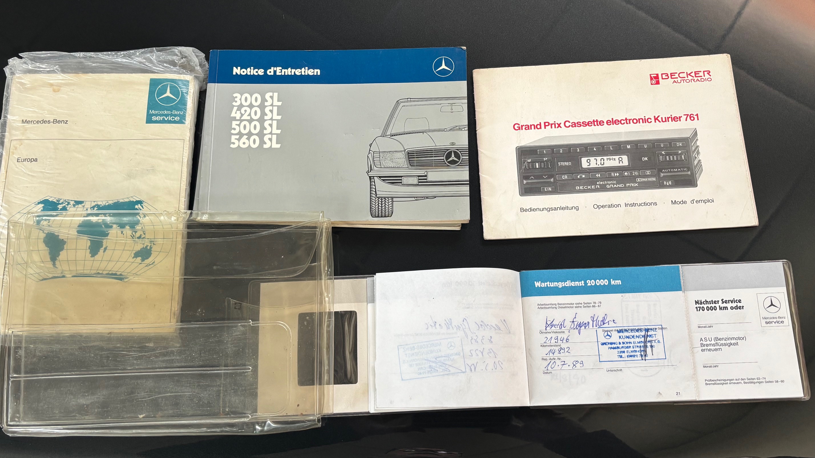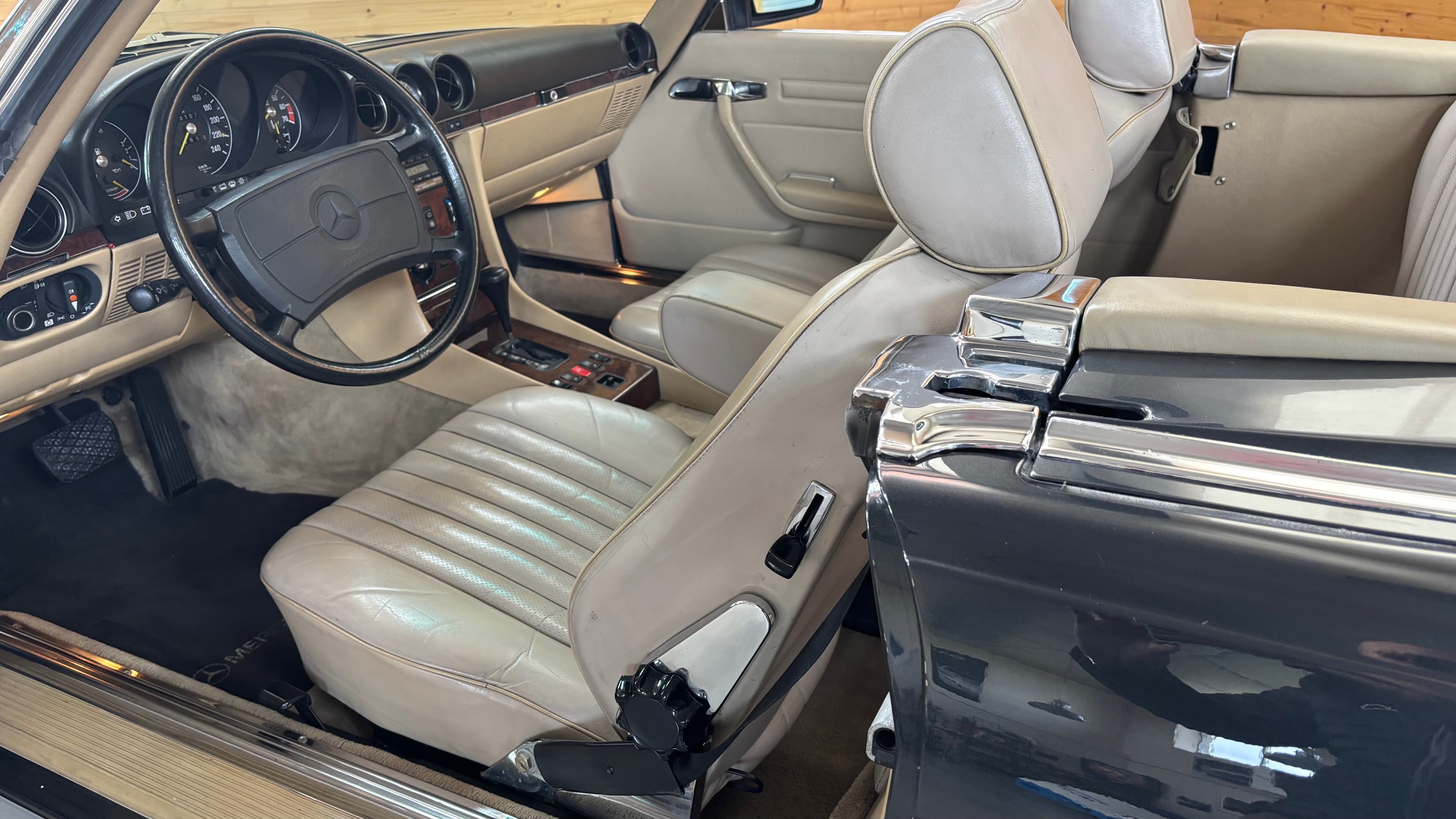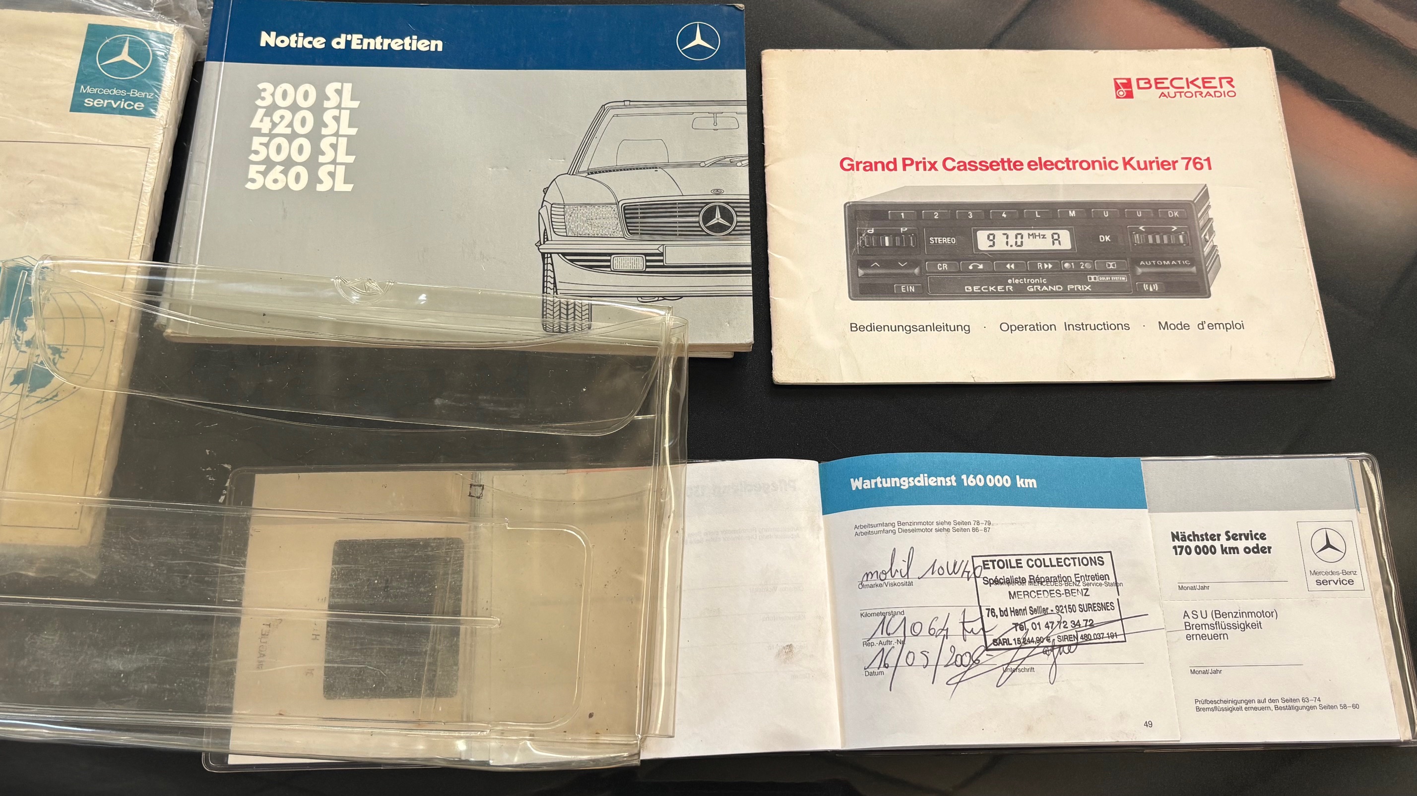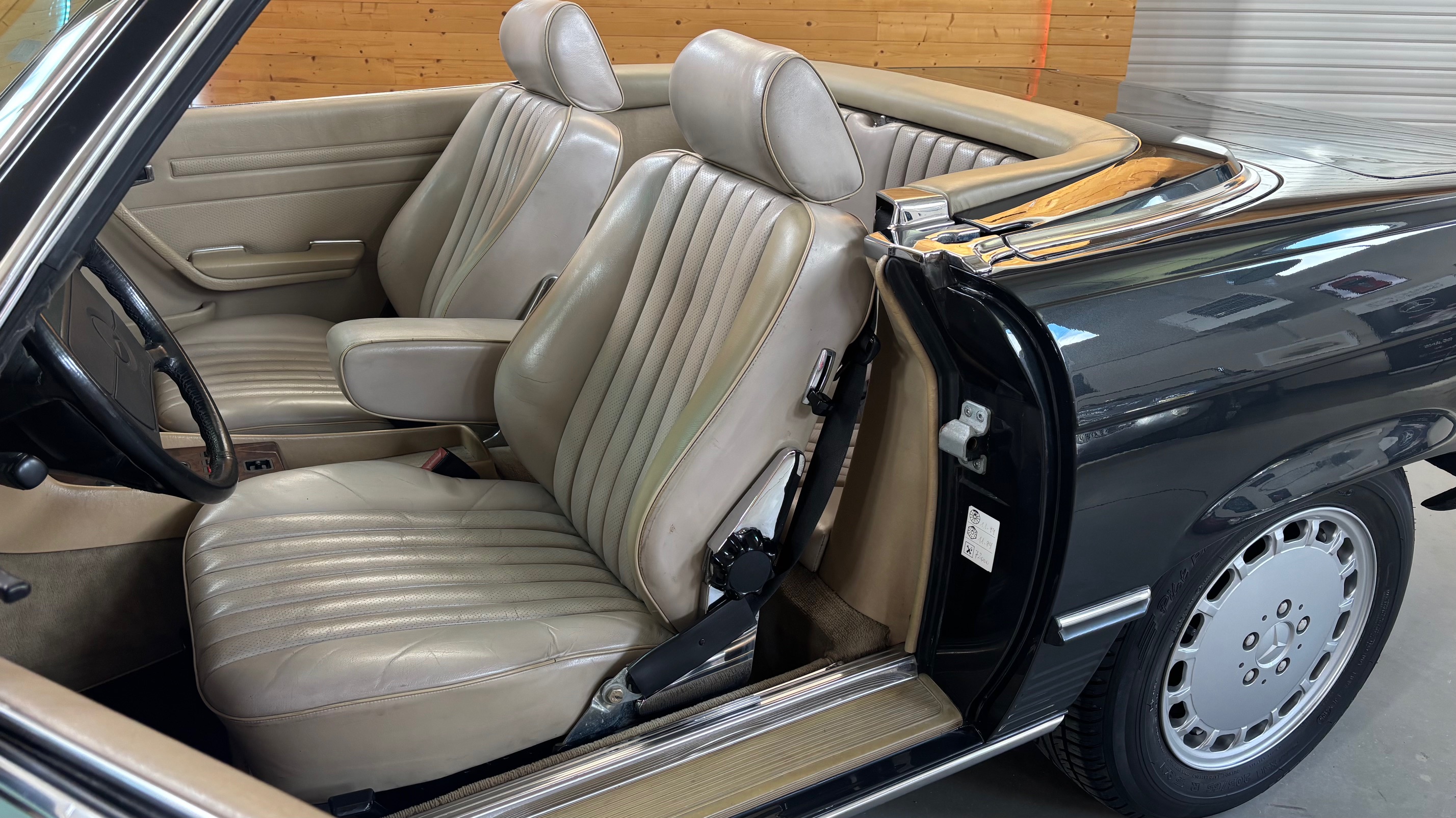 C’est bien cette dernière version, considérée logiquement comme la meilleure et la plus aboutie, que nous vous présentons aujourd’hui. Livrée neuve en Allemagne le 6 mai 1987 comme en atteste son carnet de maintenance, cette 500 SL est pourvue du moteur le plus puissant monté sur une 107 de série. Elle sera immatriculée en France en 1999 puis rejoindra l’importante collection de son dernier propriétaire en mai 2007.
