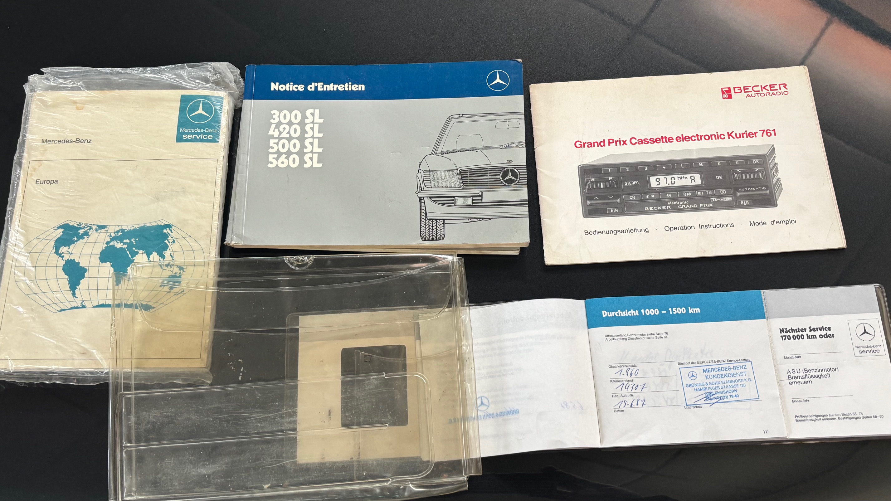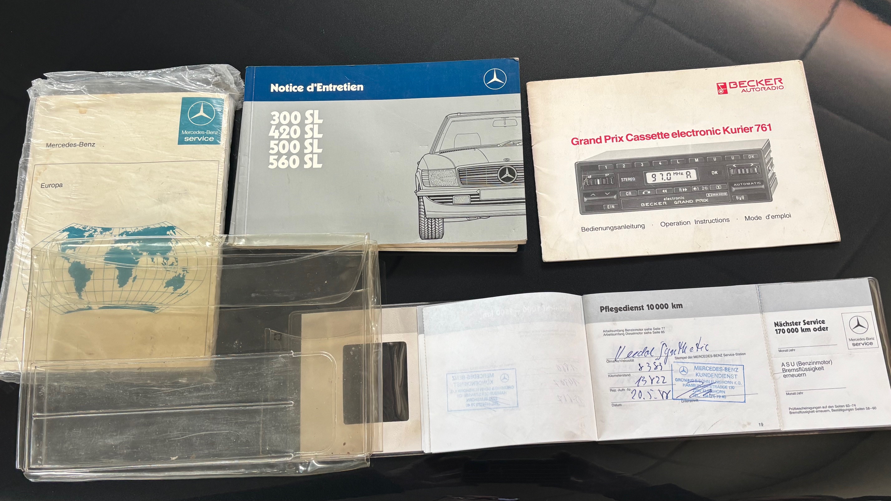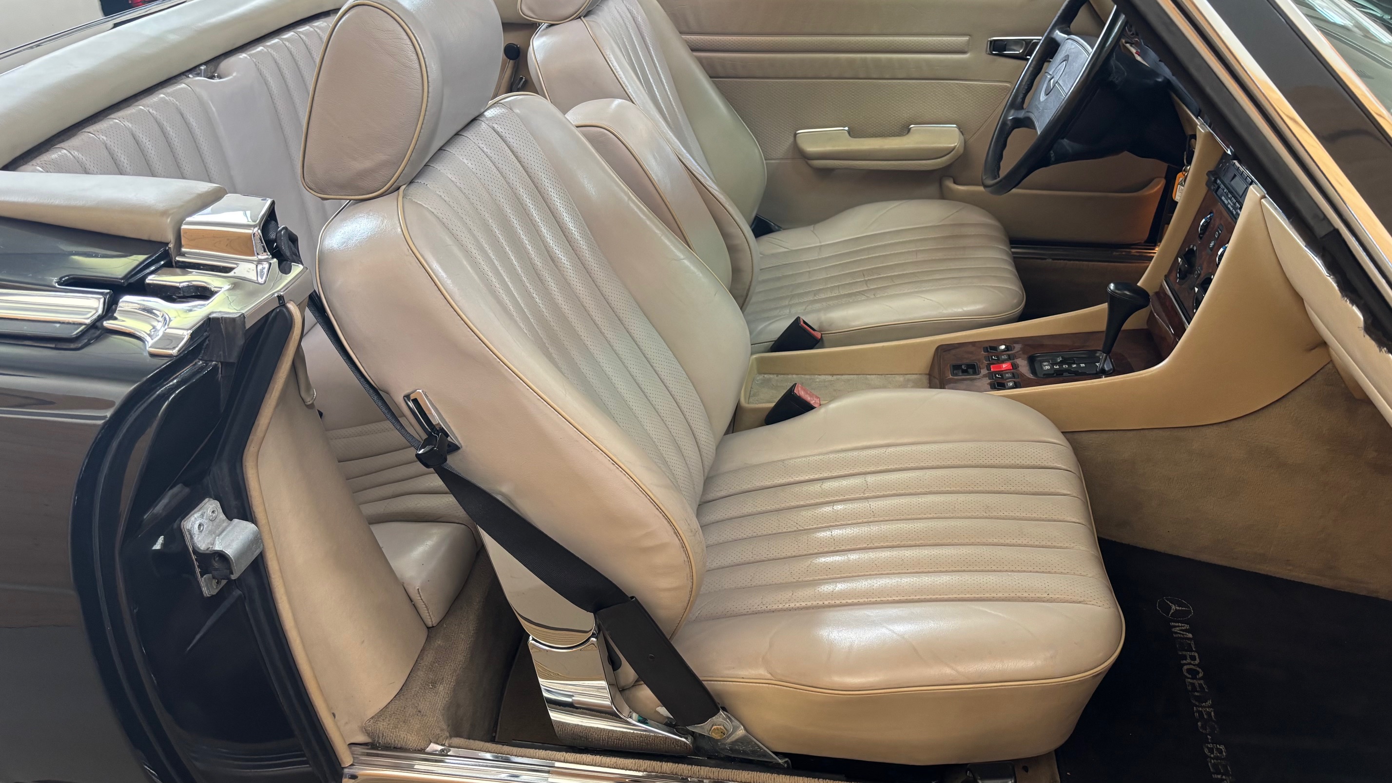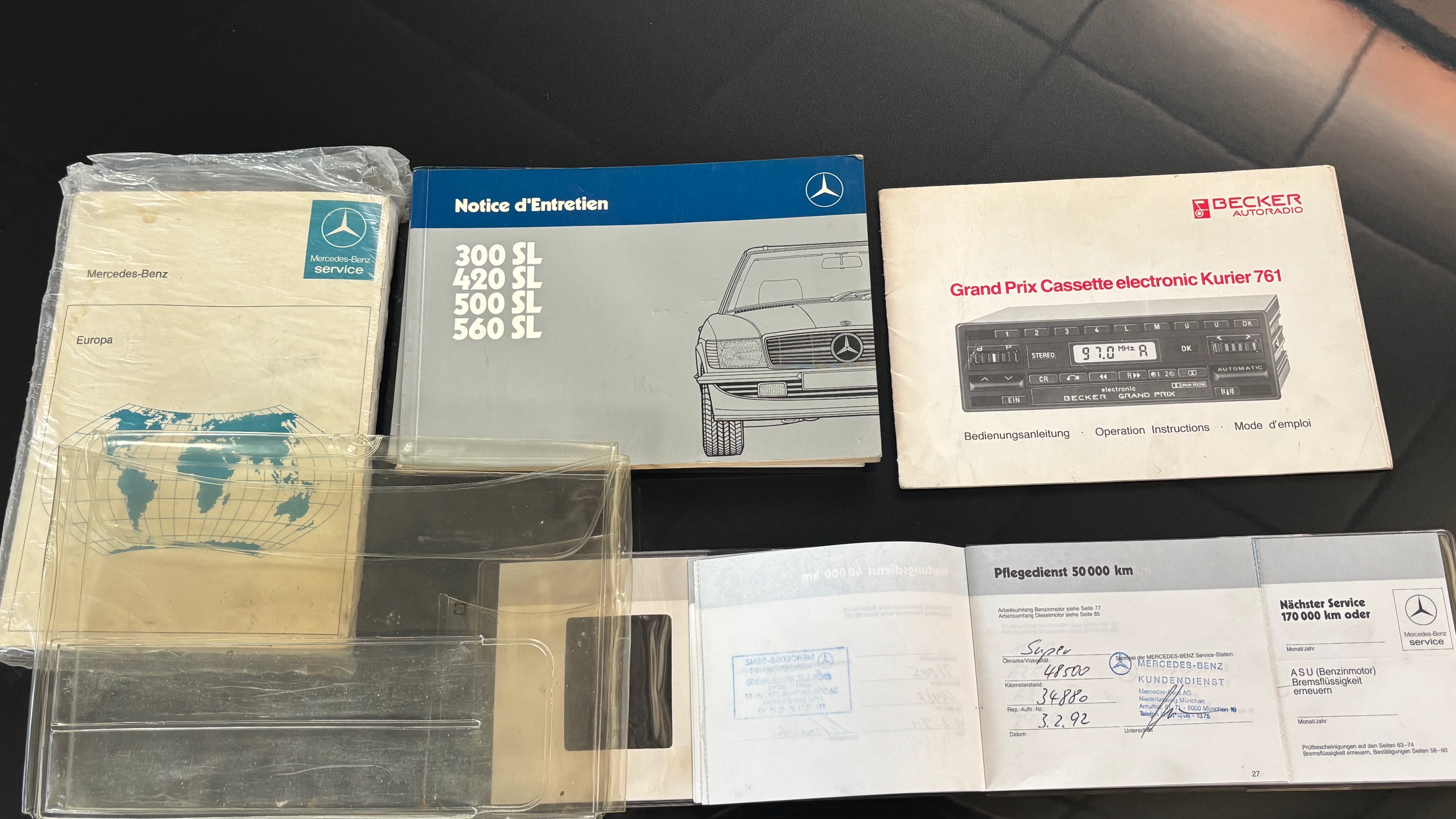 C’est bien cette dernière version, considérée logiquement comme la meilleure et la plus aboutie, que nous vous présentons aujourd’hui. Livrée neuve en Allemagne le 6 mai 1987 comme en atteste son carnet de maintenance, cette 500 SL est pourvue du moteur le plus puissant monté sur une 107 de série. Elle sera immatriculée en France en 1999 puis rejoindra l’importante collection de son dernier propriétaire en mai 2007.