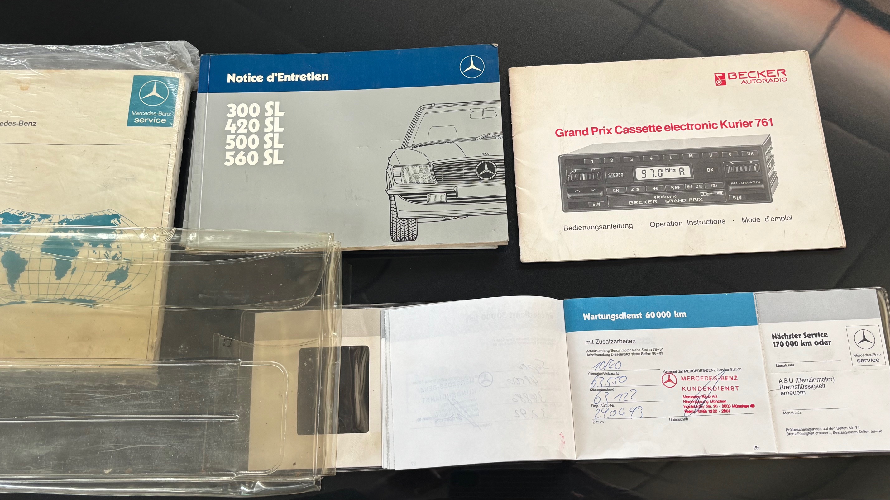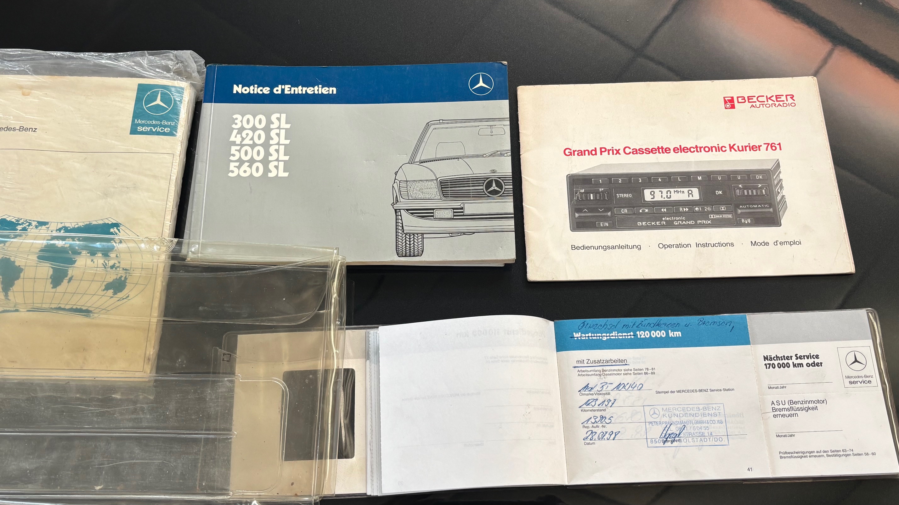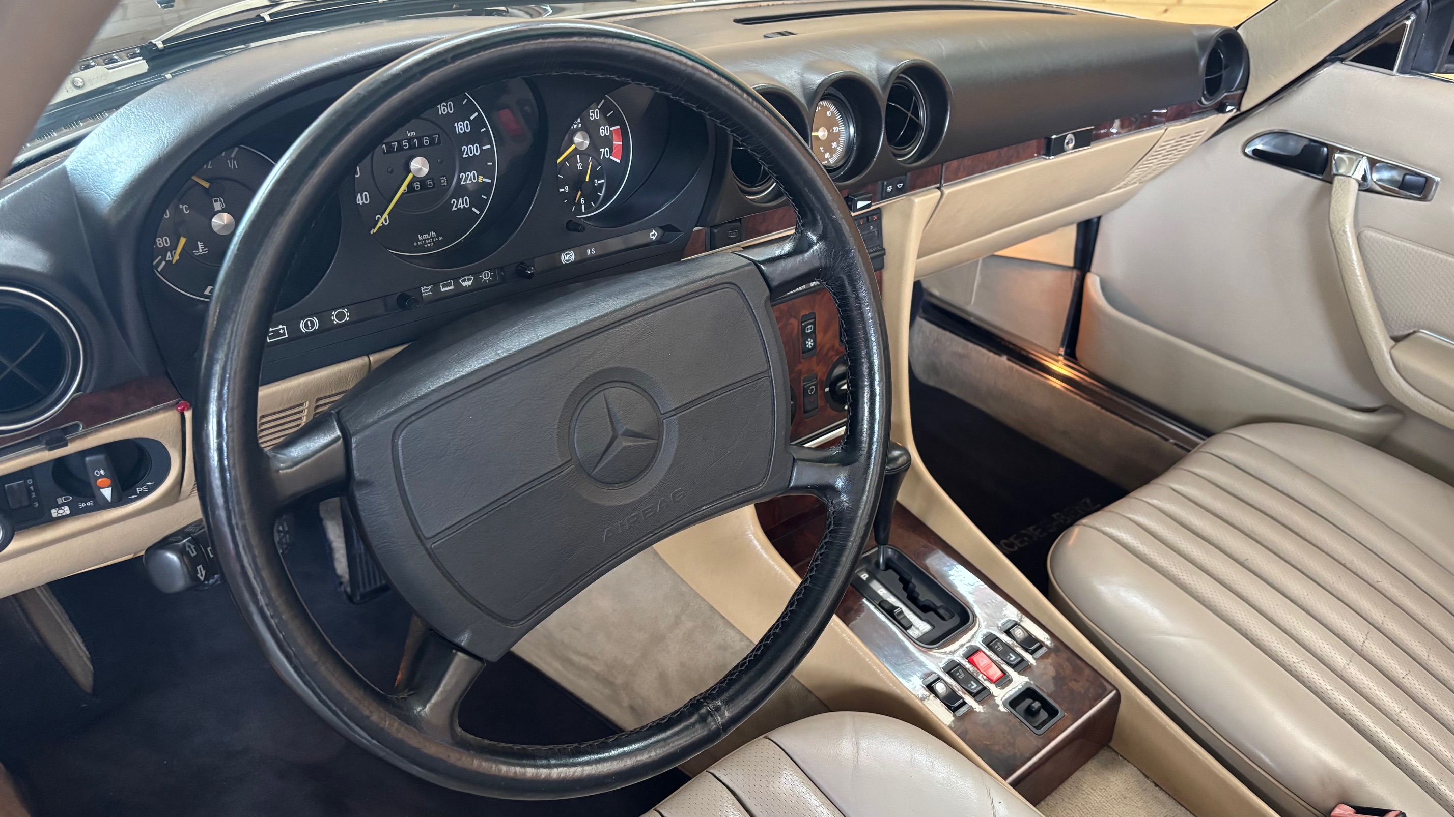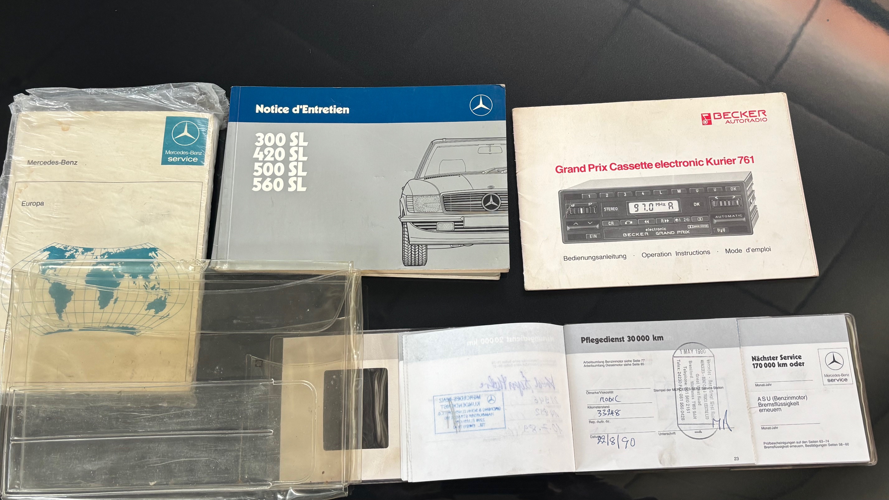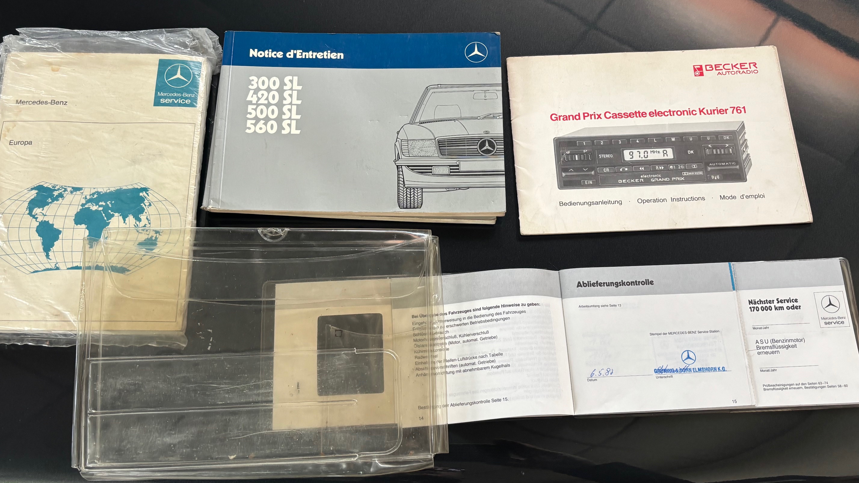 C’est bien cette dernière version, considérée logiquement comme la meilleure et la plus aboutie, que nous vous présentons aujourd’hui. Livrée neuve en Allemagne le 6 mai 1987 comme en atteste son carnet de maintenance, cette 500 SL est pourvue du moteur le plus puissant monté sur une 107 de série. Elle sera immatriculée en France en 1999 puis rejoindra l’importante collection de son dernier propriétaire en mai 2007.