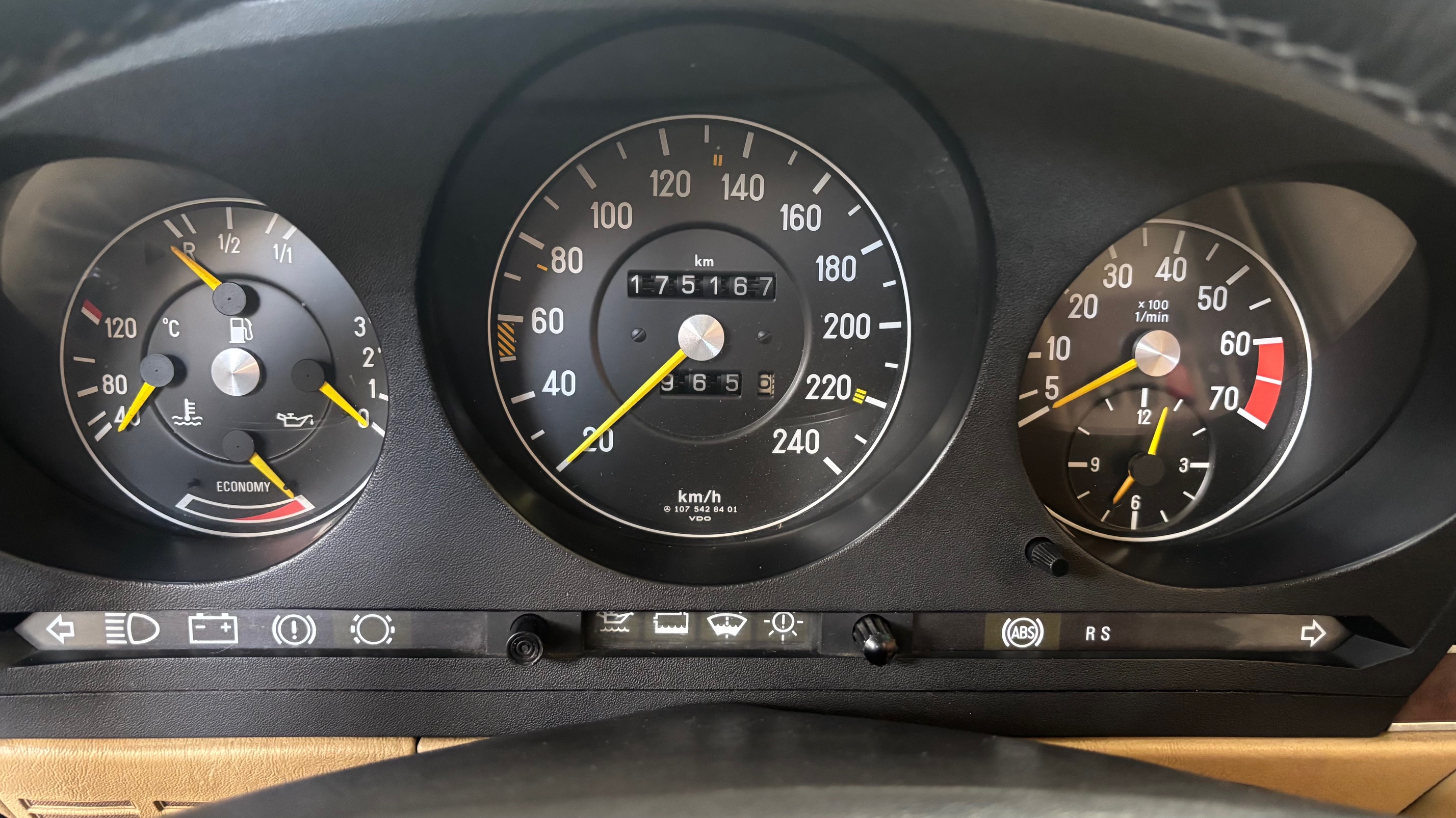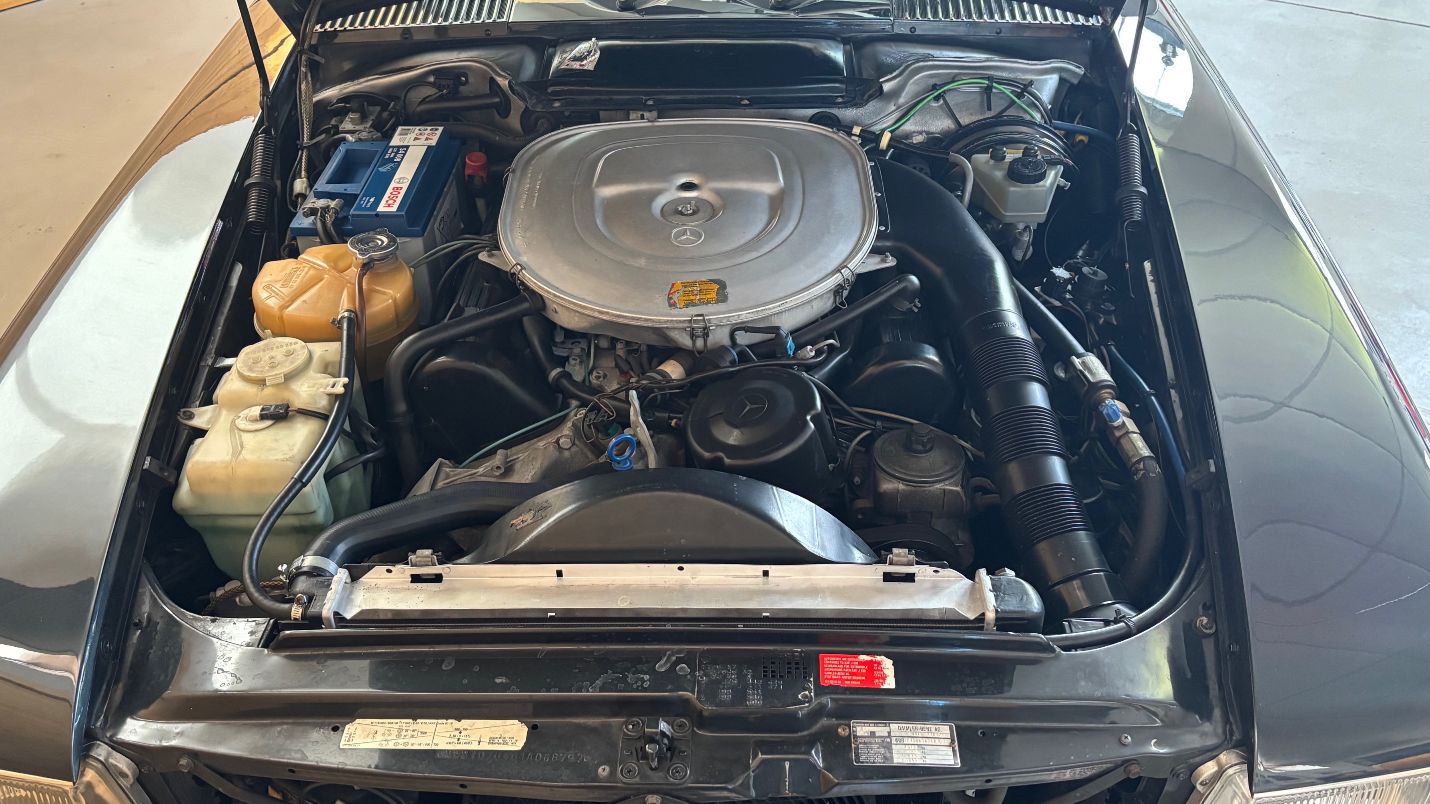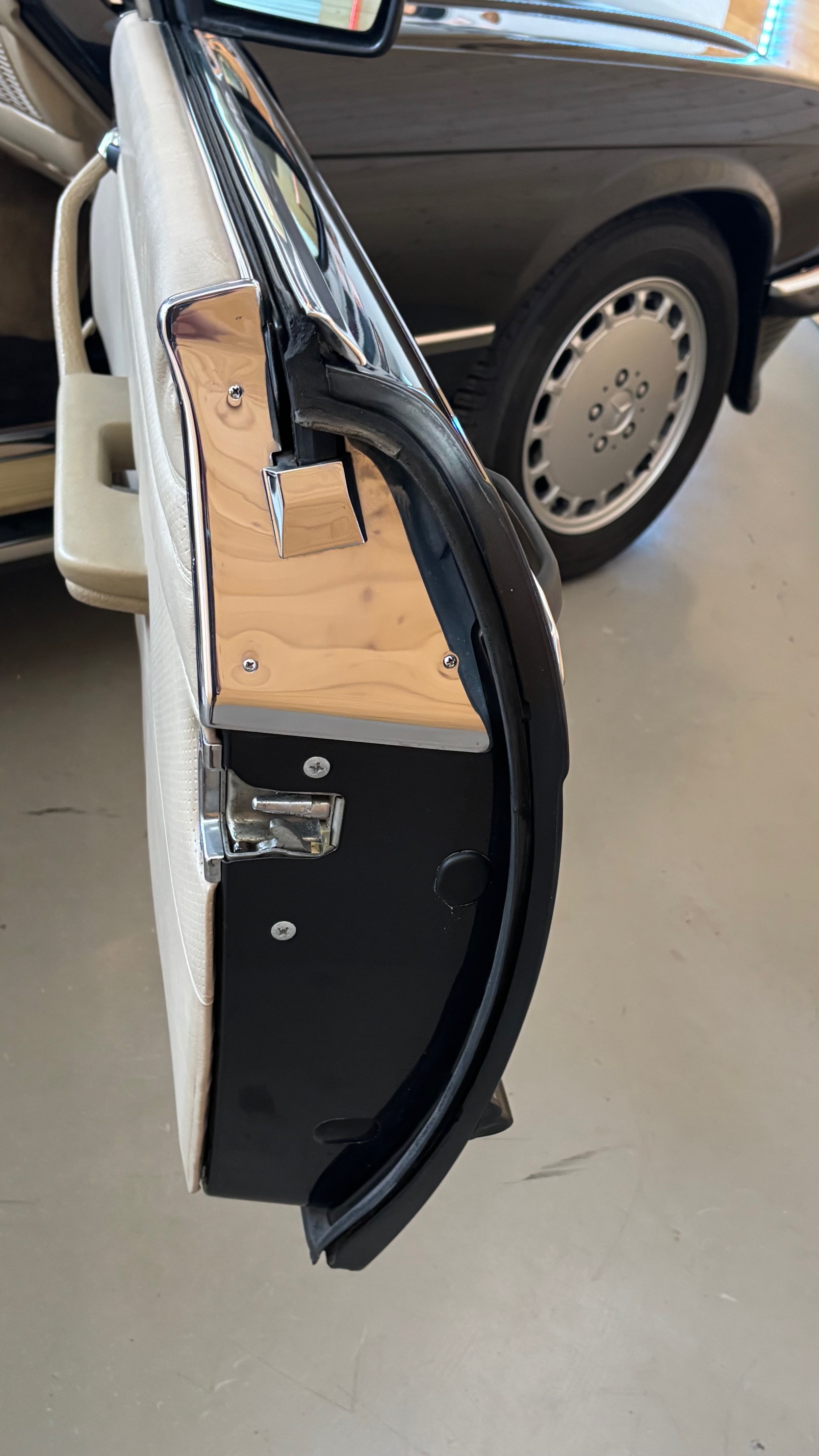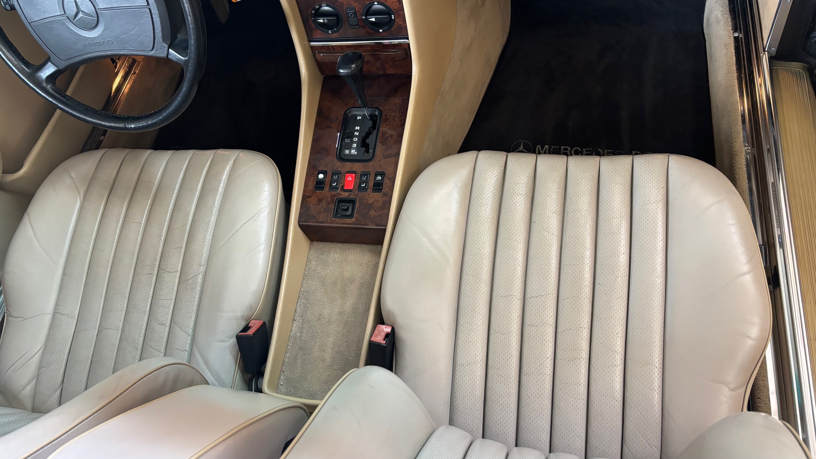 C’est bien cette dernière version, considérée logiquement comme la meilleure et la plus aboutie, que nous vous présentons aujourd’hui. Livrée neuve en Allemagne le 6 mai 1987 comme en atteste son carnet de maintenance, cette 500 SL est pourvue du moteur le plus puissant monté sur une 107 de série. Elle sera immatriculée en France en 1999 puis rejoindra l’importante collection de son dernier propriétaire en mai 2007.