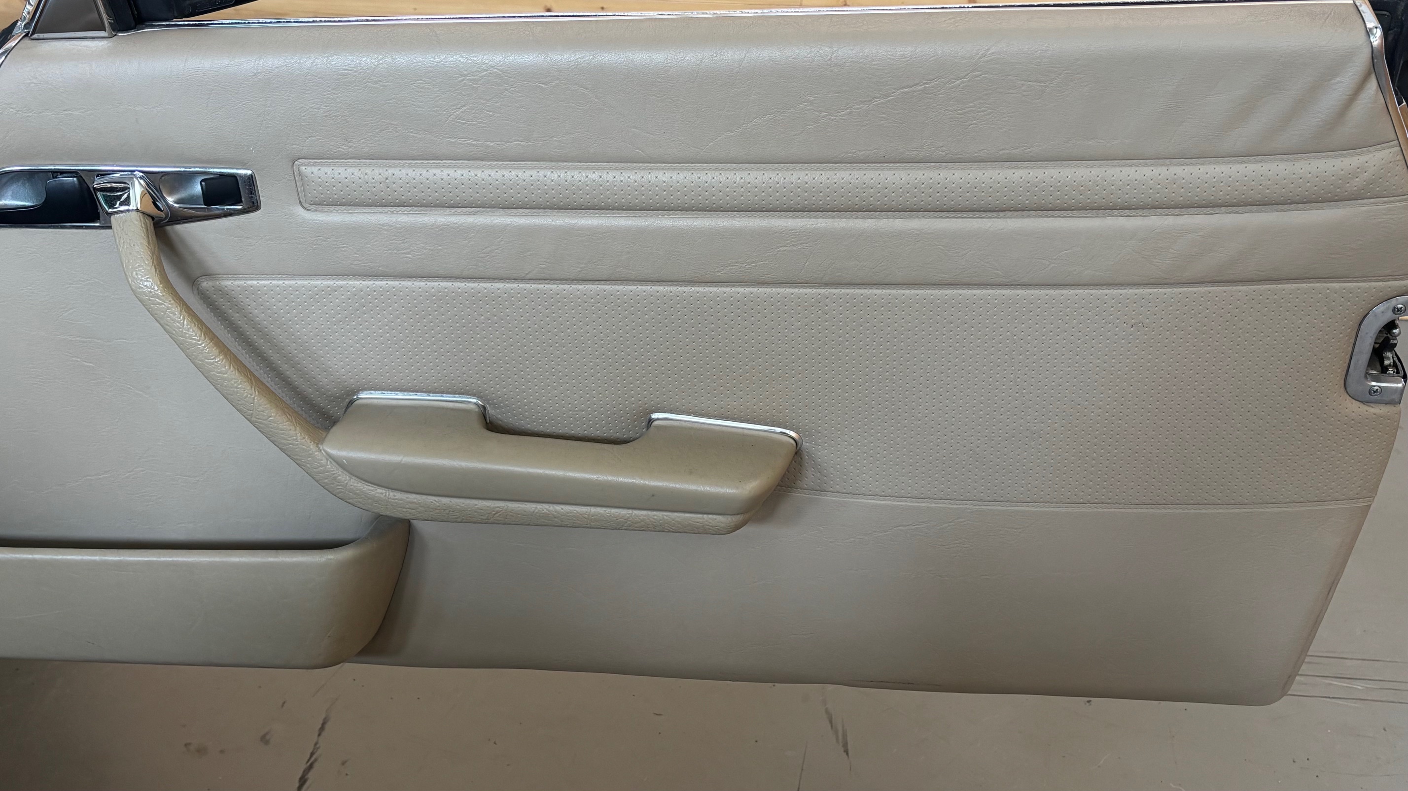 La carrosserie a été polylustrée, le cuir beige présente une légère et élégante patine : il a été nourri mais non restauré. La capote en alpaga noir enfin, a été elle remise à neuf.