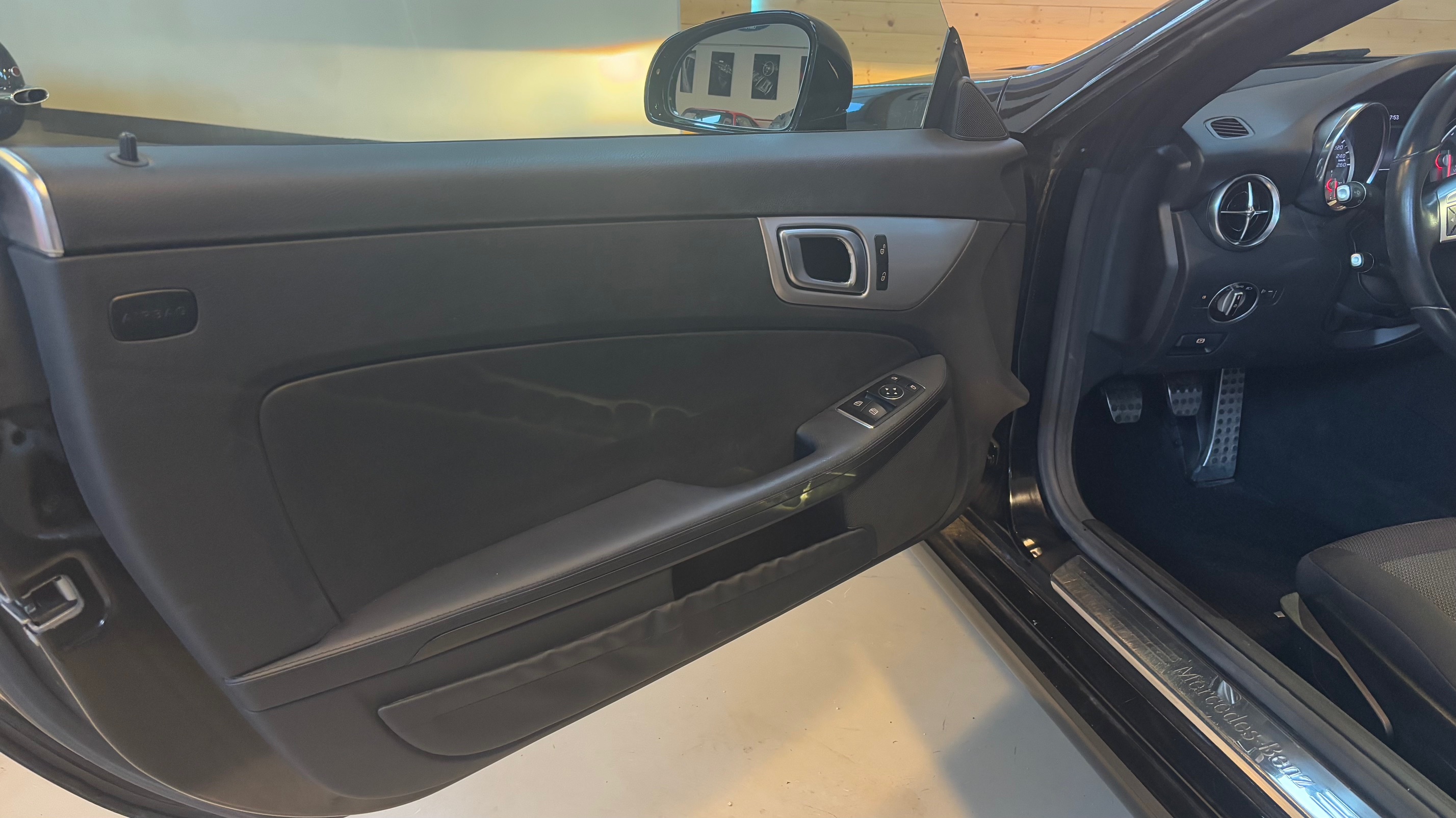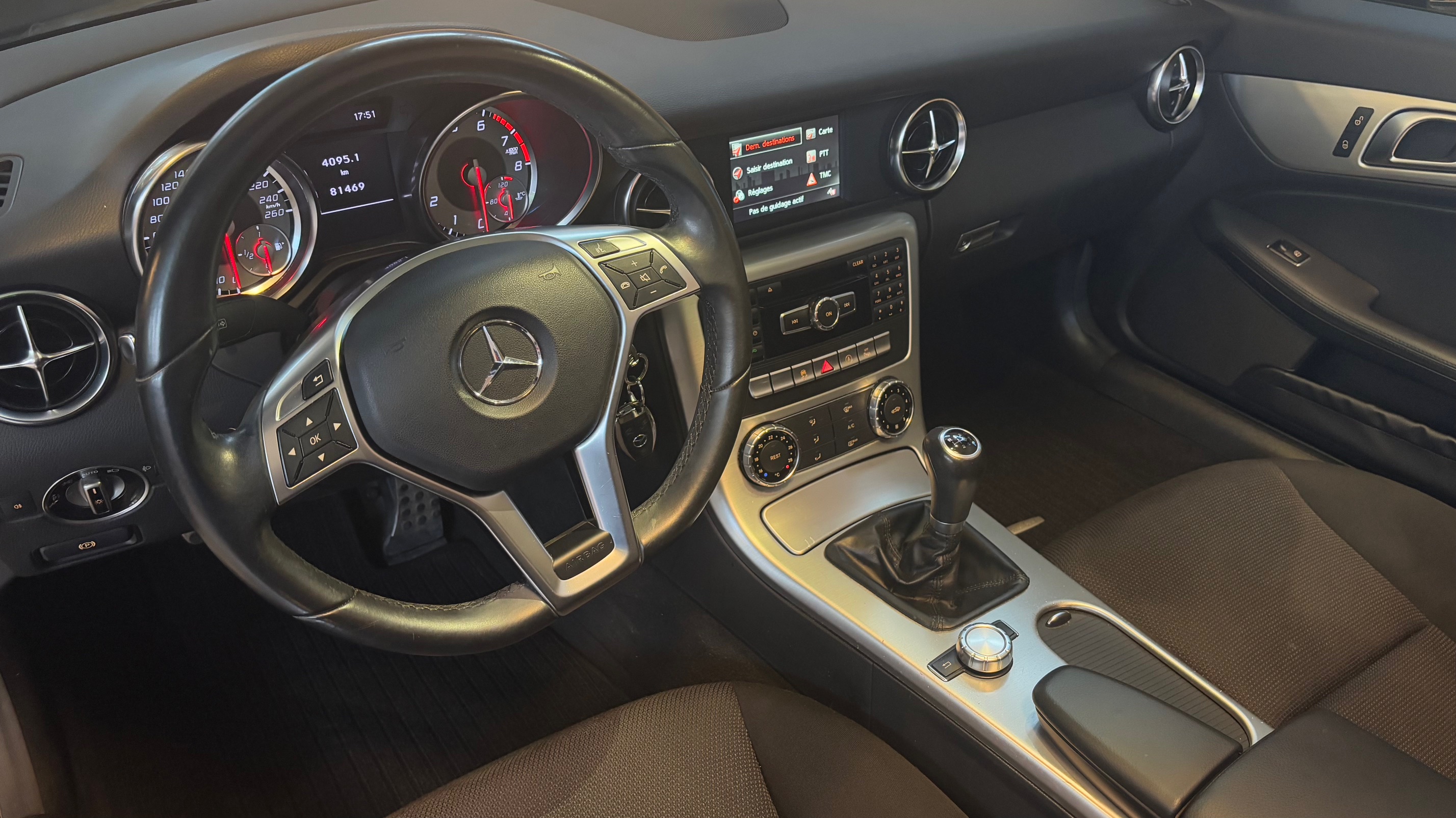 C’est bien ce modèle que nous vous proposons aujourd’hui : livré neuf en novembre 2015 à la concession Mercedes de Limoges, il n’a connu qu’un seul et unique propriétaire qui le conserva avec grand soin jusqu’à aujourd’hui. Présentée dans une sobre et élégante robe noire vernie, il est équipé de l’aide au parking avant/arrière, du GPS Garmin, du téléphone bluetooth et des jantes alliage 5 branches.