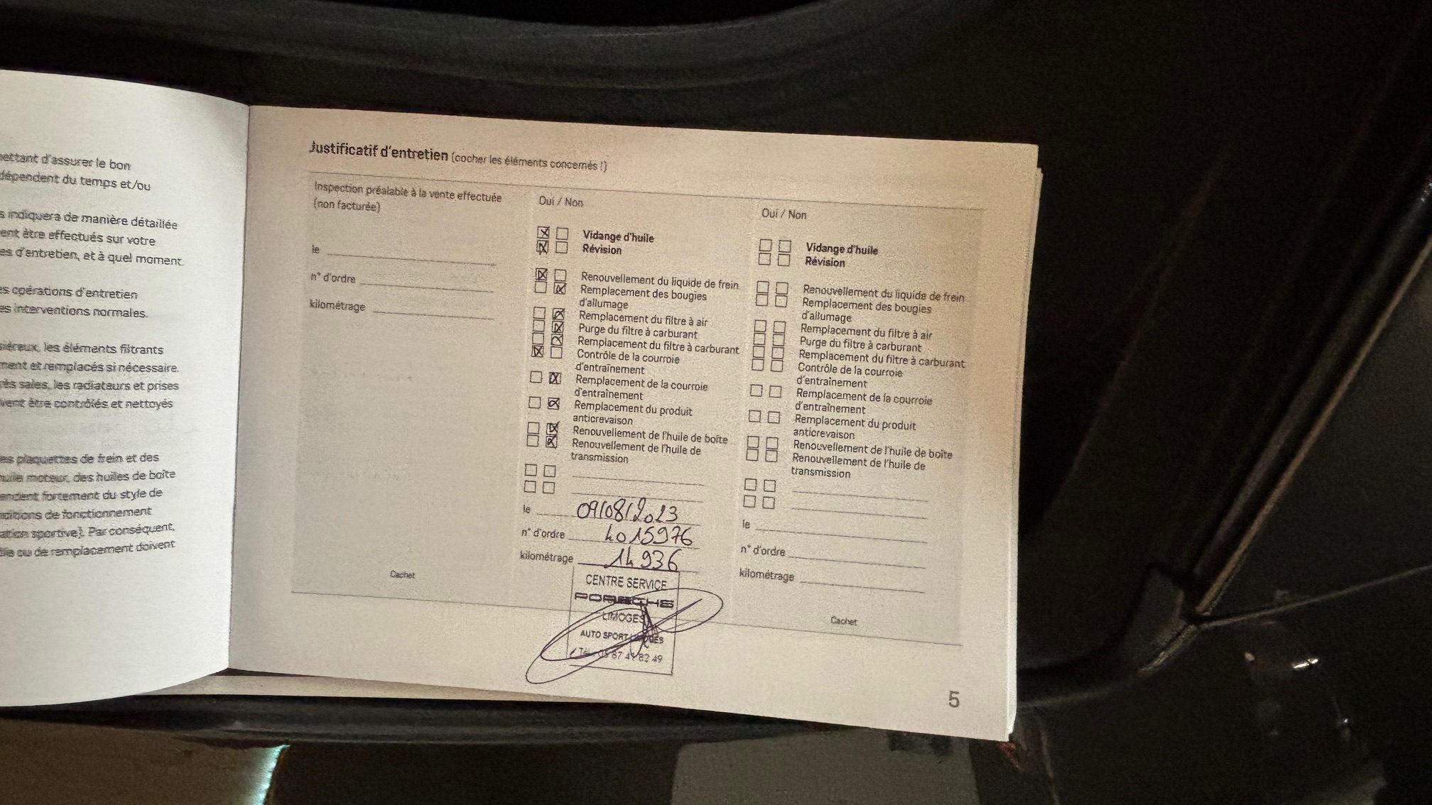 Mécaniquement le carnet d’entretien stipule les entretiens réalisés à 14000 et 21000 kms. Les 4 pneumatiques seront changés pour la livraison et cette magnifique 992 bénéficiera d’une garantie de 12 mois.