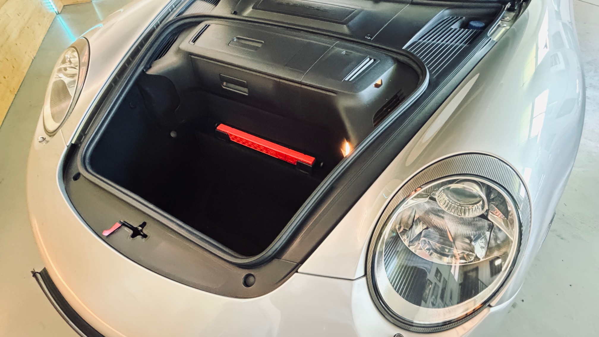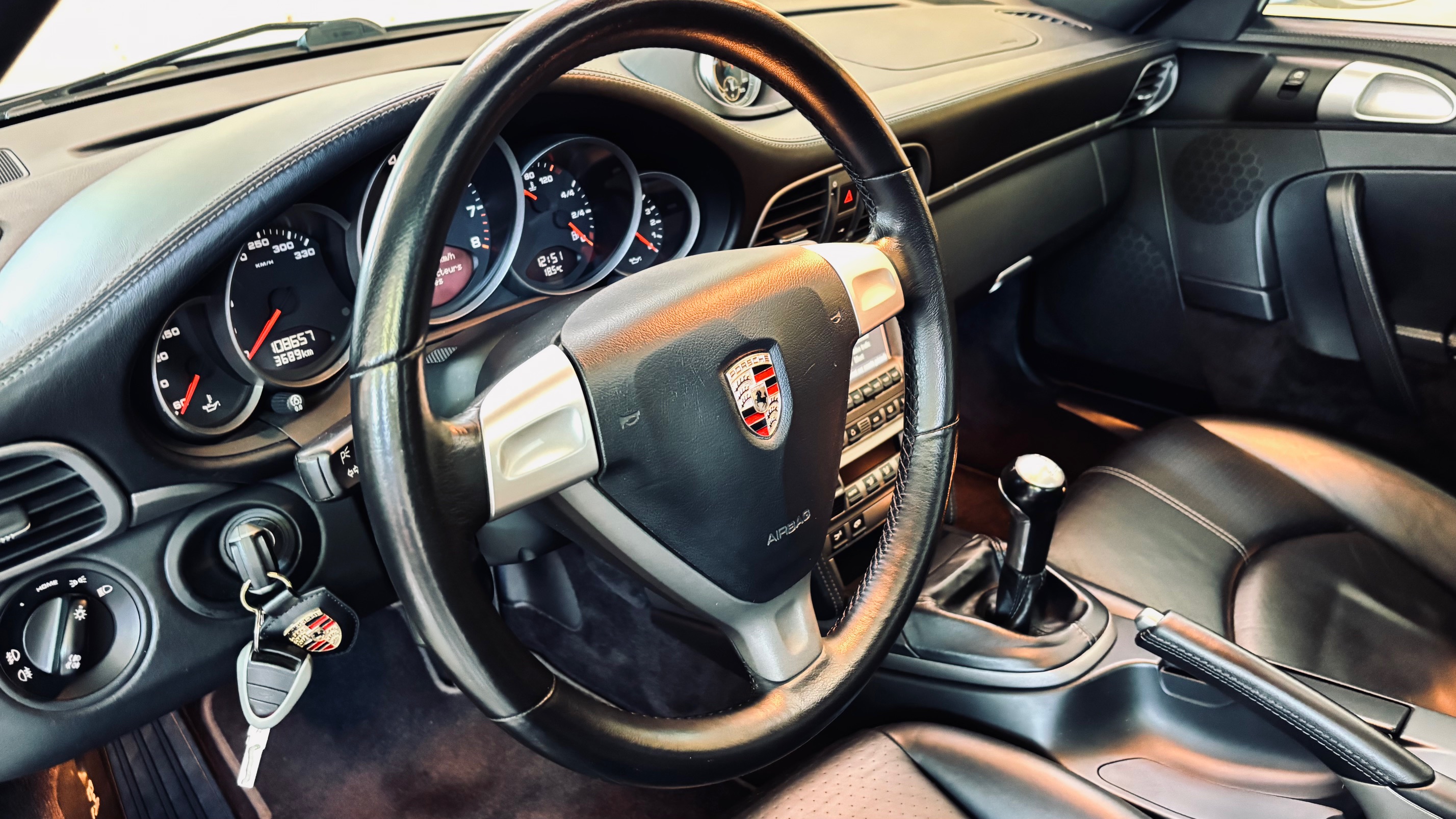 Sous son capot arrière, un flat-six atmosphérique de 3,6 litres à injection séquentielle développant 325 chevaux, transmis aux seules roues arrière par une boîte mécanique à 6 rapports. Pas de turbo, pas d’électronique envahissante, juste un moteur d’une franchise absolue, qui monte en régime avec cette sonorité unique que seul un flat-six Porsche atmosphérique sait produire. Le 0 à 100 km/h est expédié en 5 secondes, mais c’est surtout la qualité des sensations qui distingue cette génération : précise, communicative, engageante sans jamais être intimidante. Tout l’ADN de la 911 et du FLAT 6 est dans ce modèle.