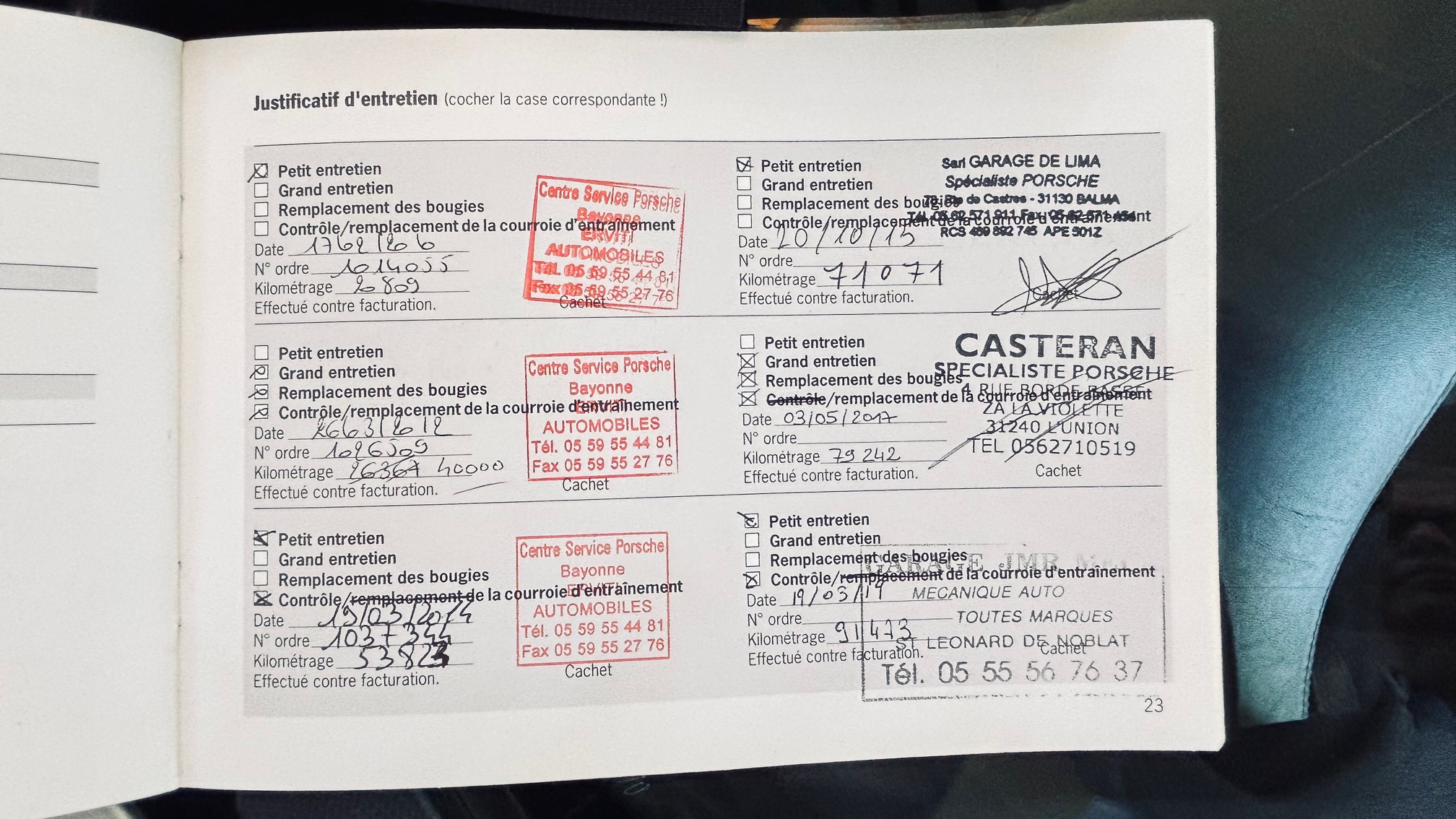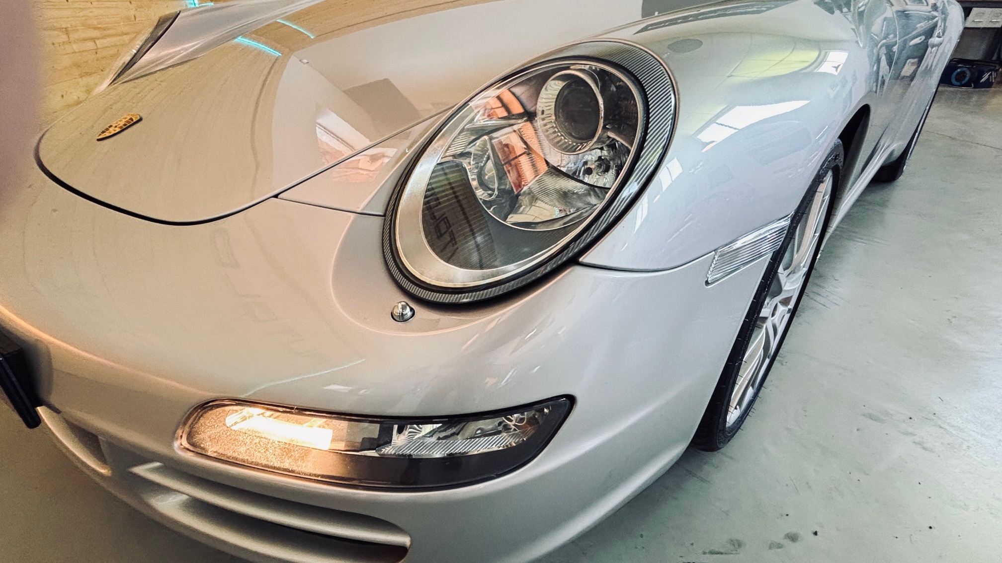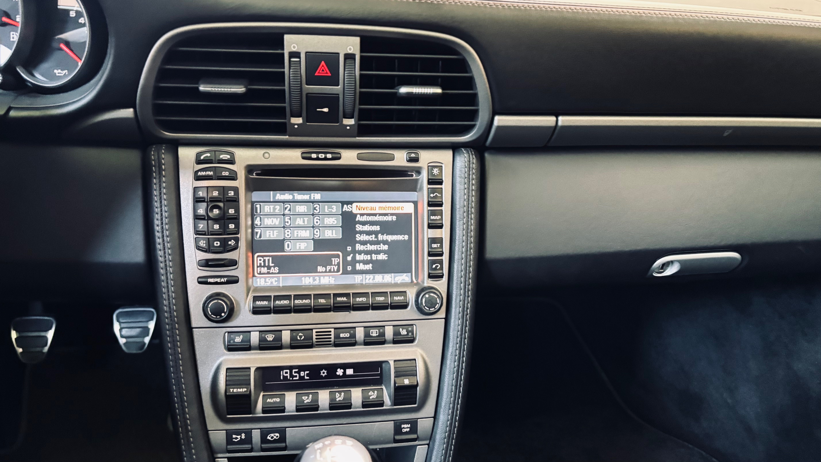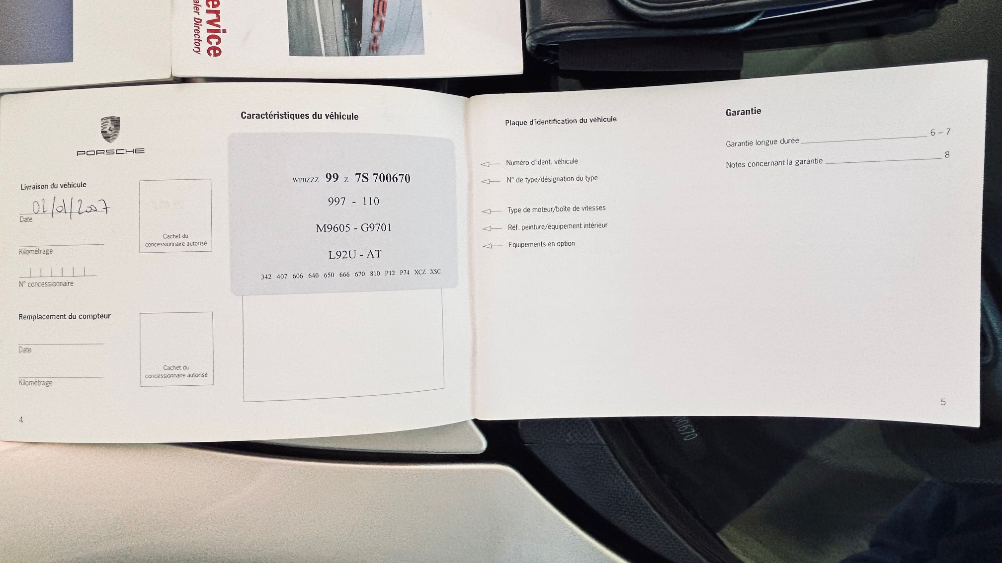 La 997 que nous vous proposons aujourd’hui a été livrée neuve en Allemagne le 4 janvier 2007 et importée en France en décembre de la même année. Entretenu initialement au centre service Porsche de Bayonne, elle sera ensuite scrupuleusement suivie par des spécialistes de la marque comme en atteste le carnet d’entretien. Présentée dans une très sobre et élégante teinte Gris Arctique métallisé (X1) intérieur tout cuir noir, elle dispose de nombreuses options dont voici le détail: