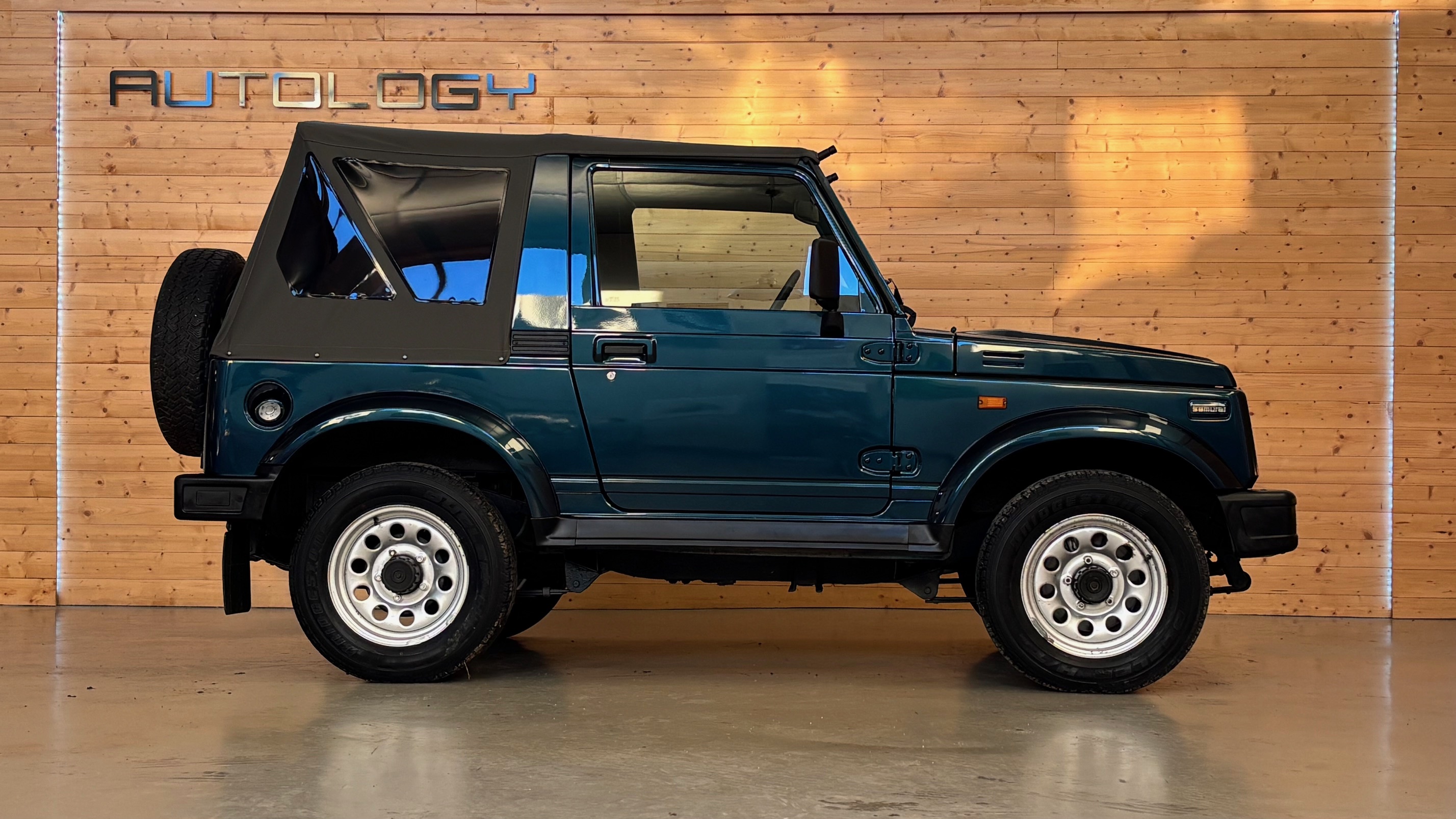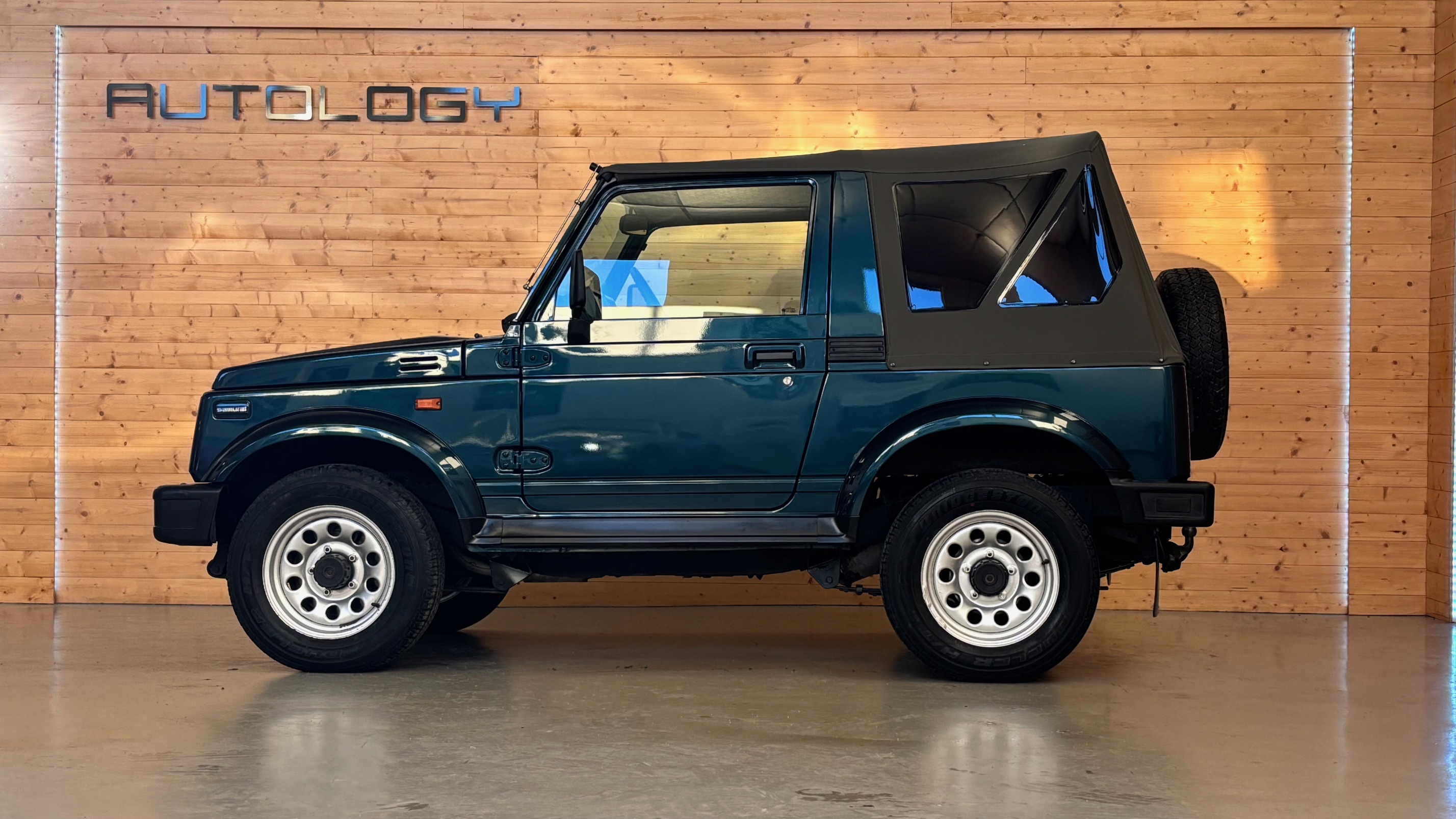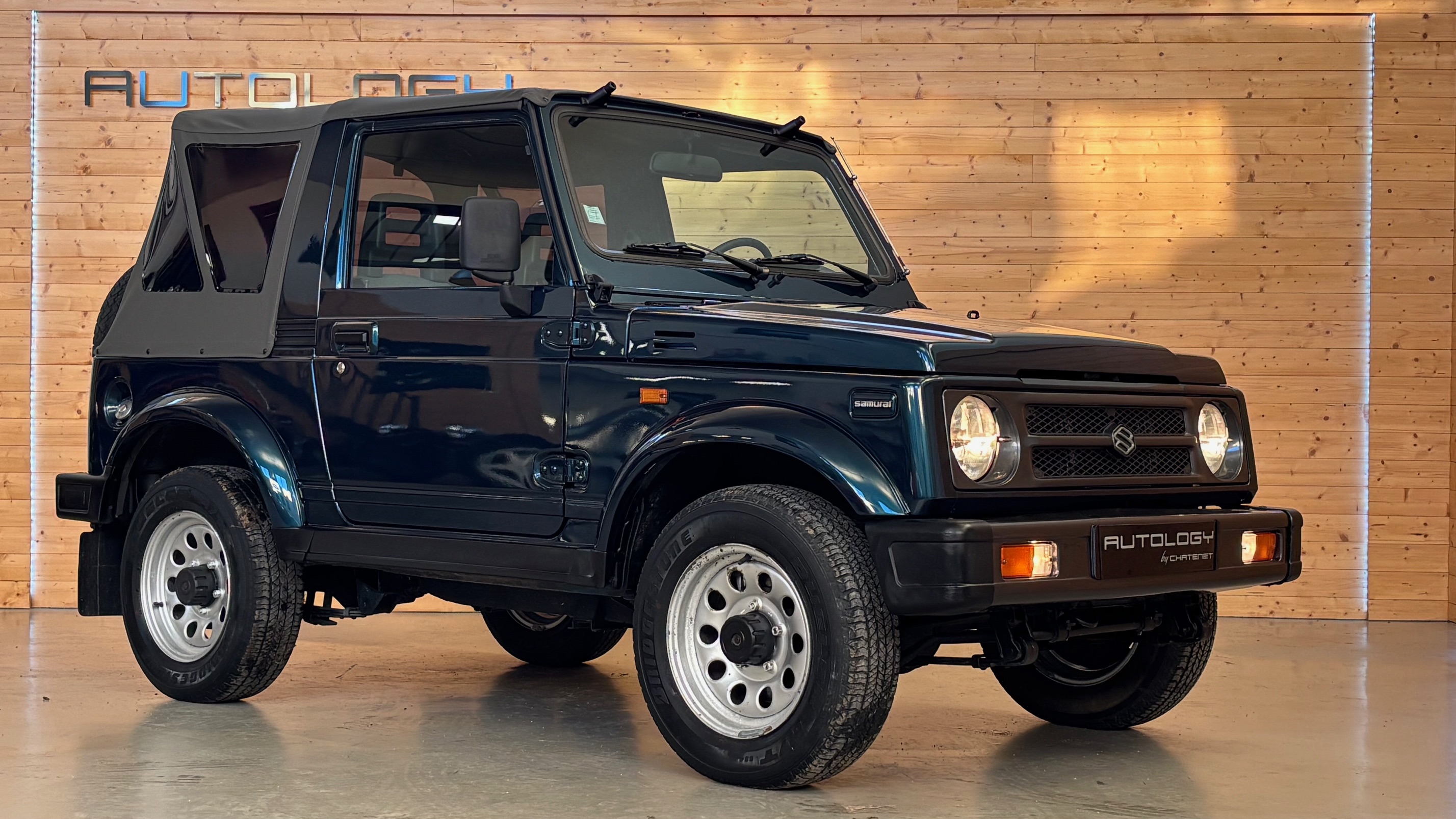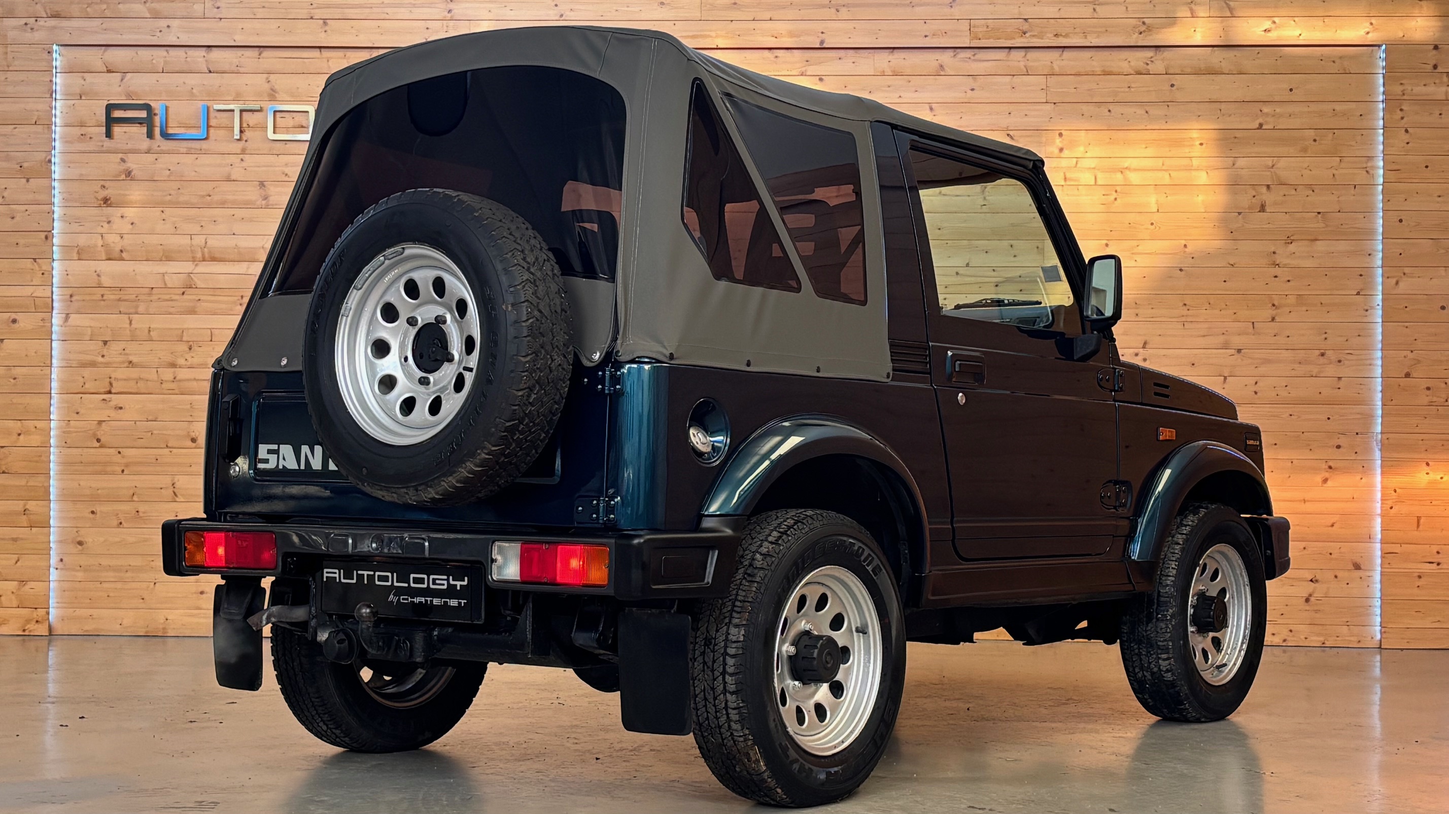 En 1989, il devient SJ413 et troque le petit 1000 cm3 de 45 cv contre un 1,3 l à carburateur qui deviendra injection en 1995 avec une puissance plus polyvalente de 69 cv. C’est bien ce modèle que nous vous proposons aujourd’hui, dans sa désirable carrosserie bâchée, qui le rend aussi agréable à utiliser en forêt qu’en bord de mer.