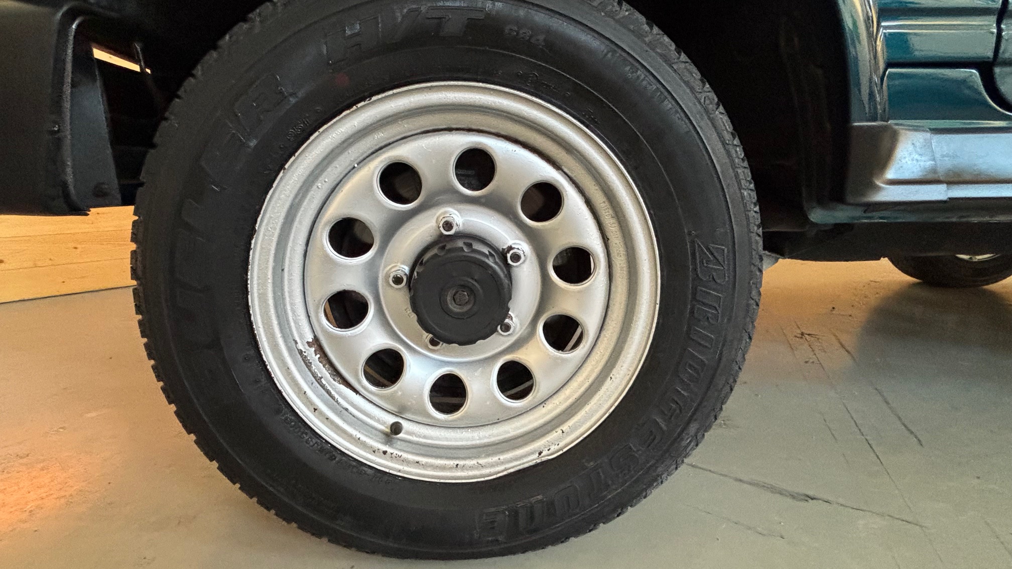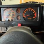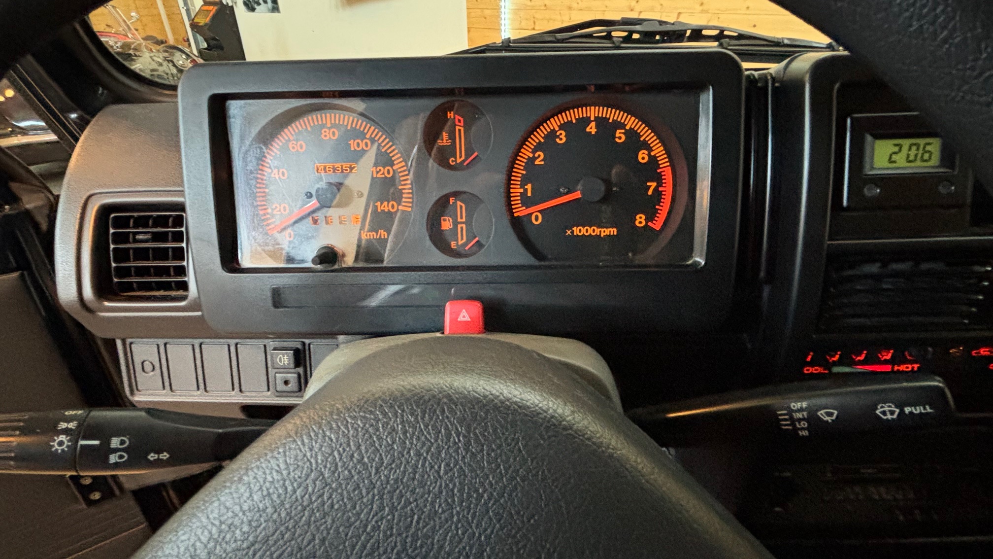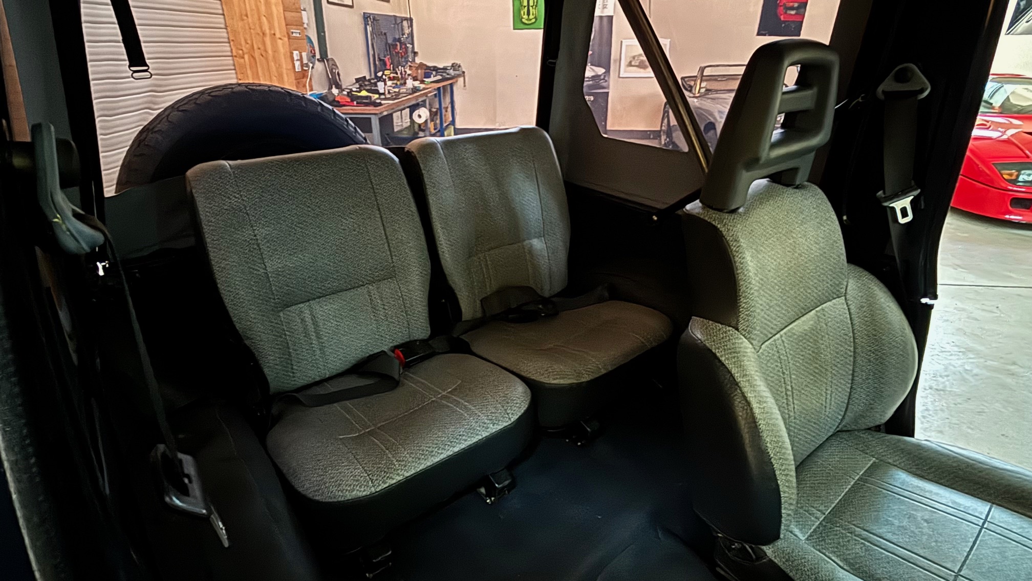 30 ans passées et les petits accrocs de la circulation urbaines avaient néanmoins eu raison de sa peinture : nous lui en avons fait une complète neuve , la bâche et également neuve, les pneus sont neufs, le pare brise (d’origine) sera remplacé pour la livraison. Mécaniquement il fonctionne comme au premier jour, et une révision complète (bougies, filtres, fluides) a été effectuée pour la livraison.