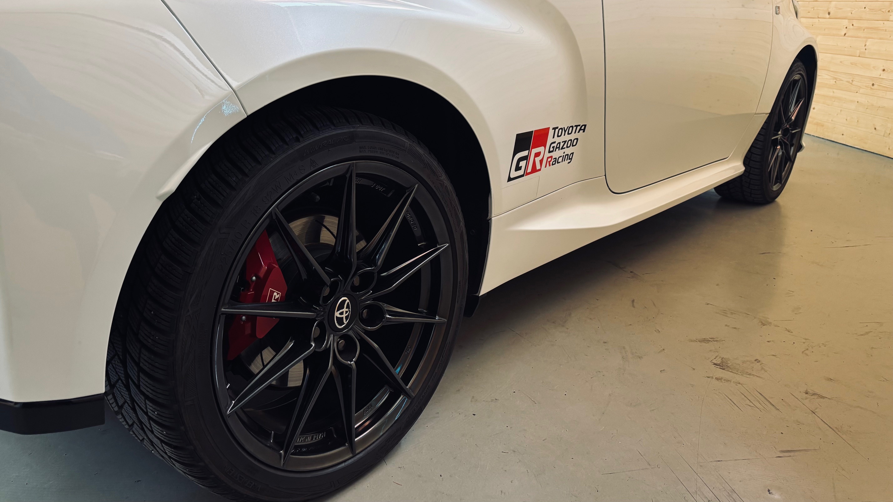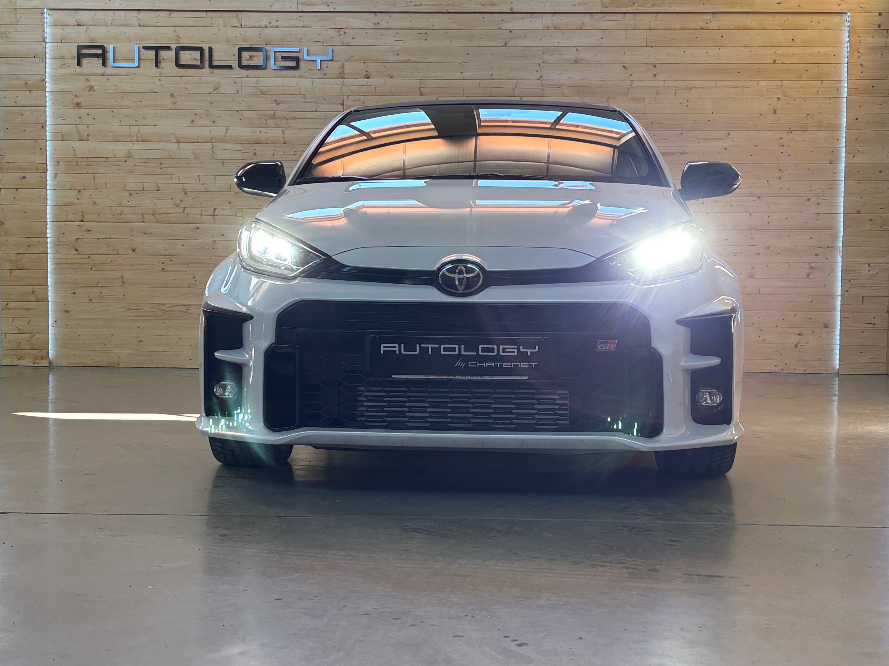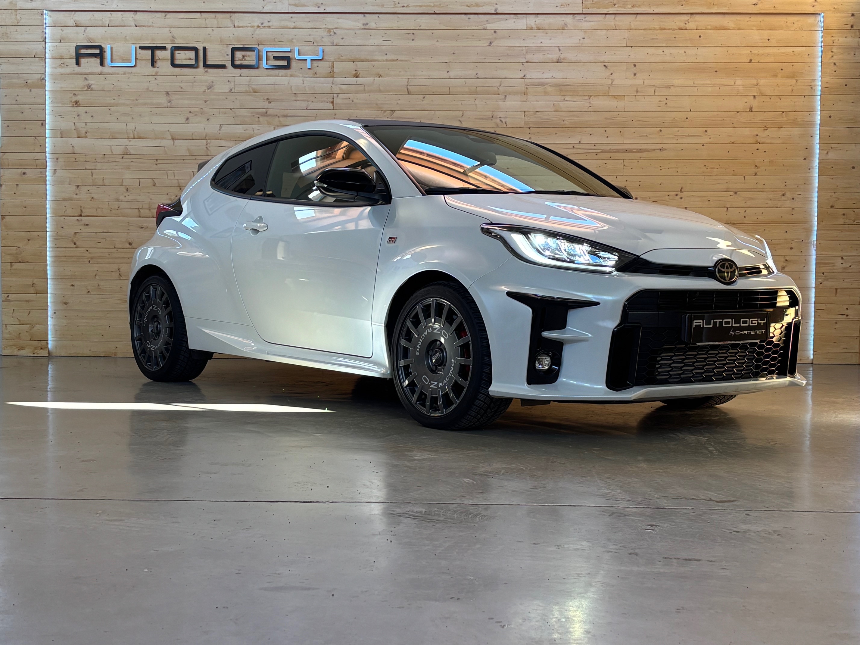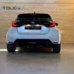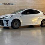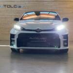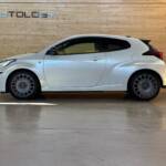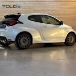 Présentée au salon de Tokyo le 10 janvier 2020, elle n’a plus grand chose à voir avec la Yaris de grande diffusion: quatre roues motrices grâce à un embrayage multidisques à commande électronique, 1.6 l 3 cylindres turbo à double injection de 261 ch, train arrière à double triangulation voilà pour la partie technique. Esthétiquement elle n’est disponible qu’en trois portes, ailes élargies, jantes spécifiques anthracite, vitres sans encadrement. Avec ses prises d’air avant élargies, elle semble vouloir dévorer l’asphalte des spéciales.