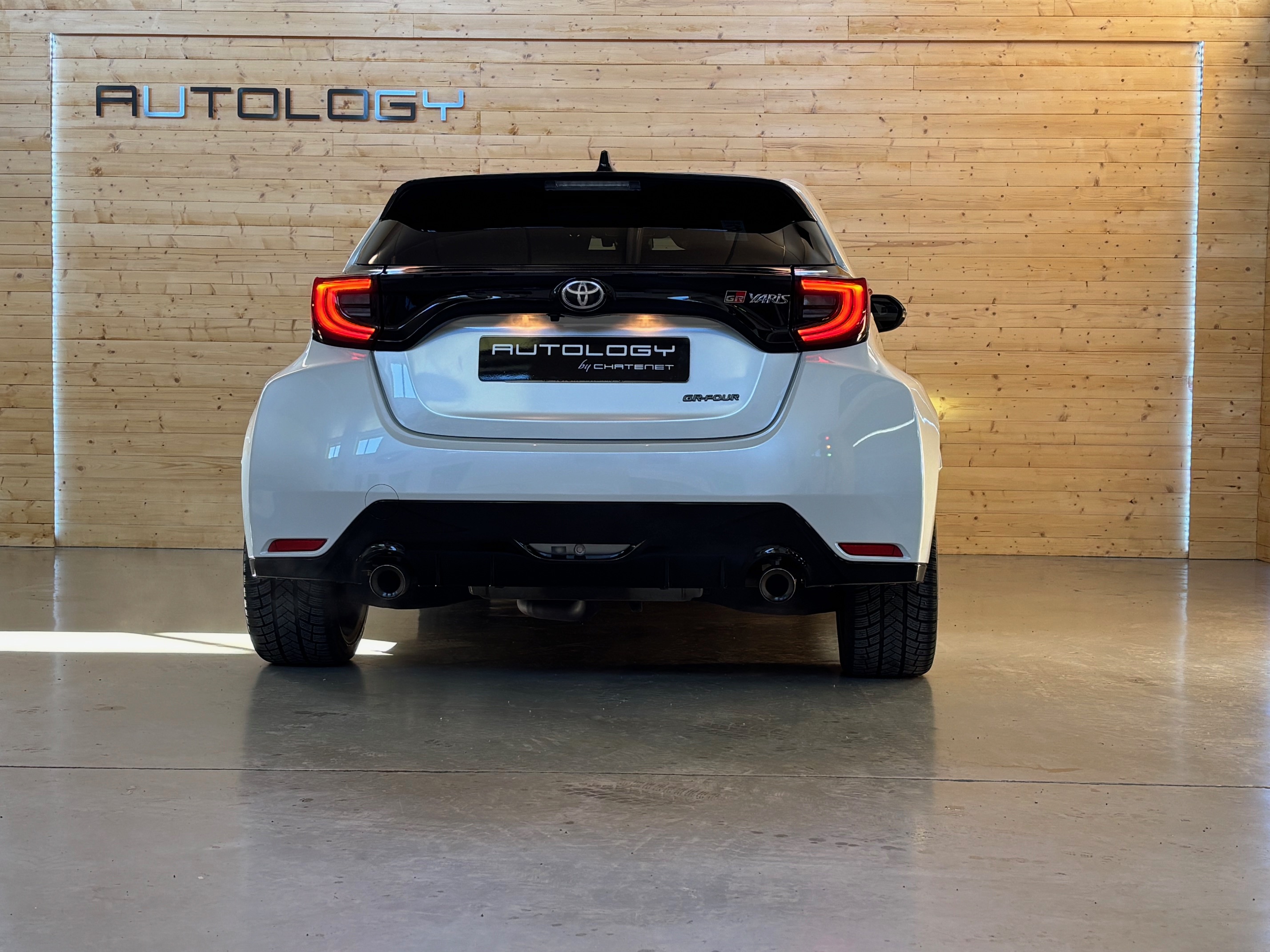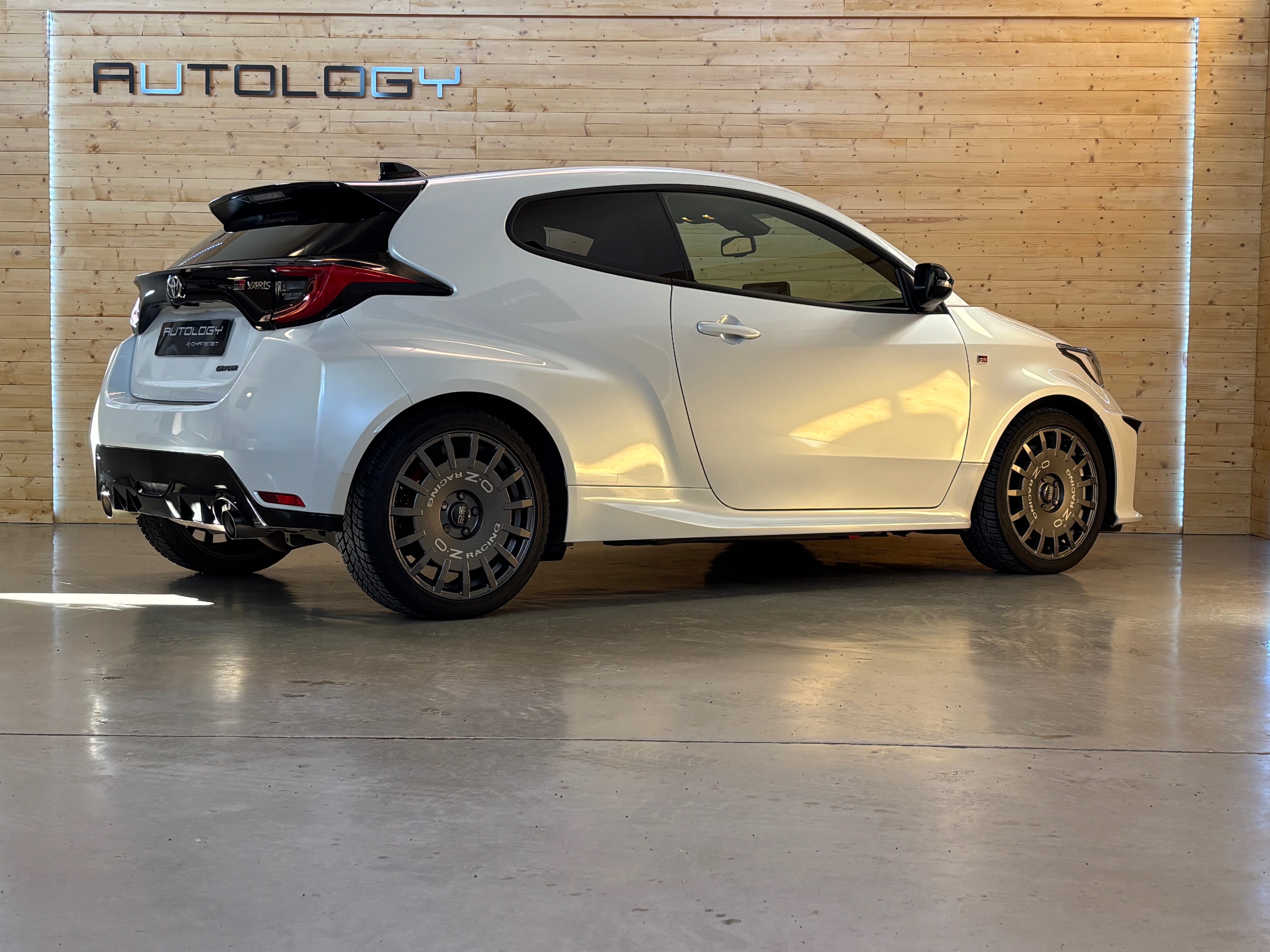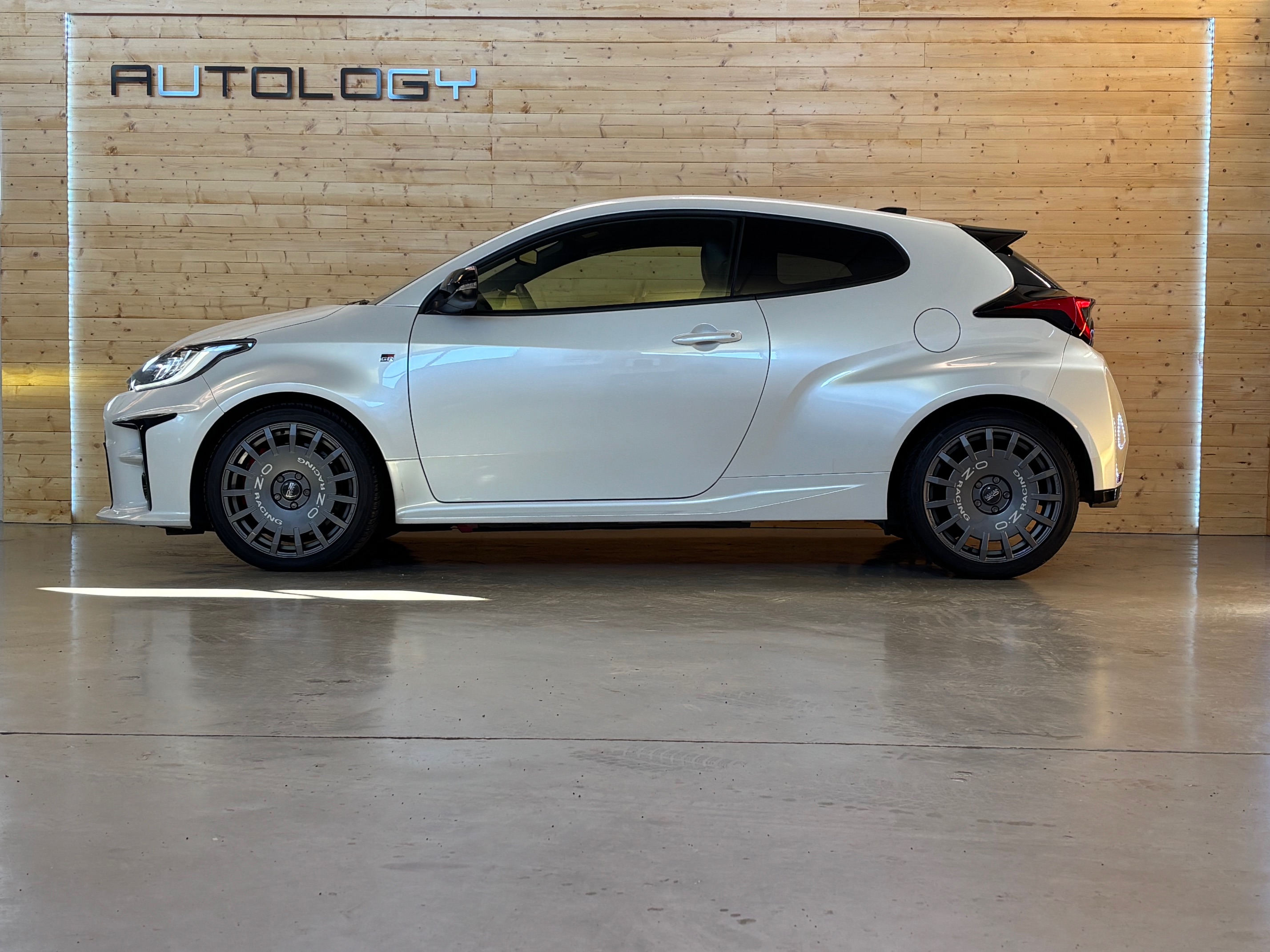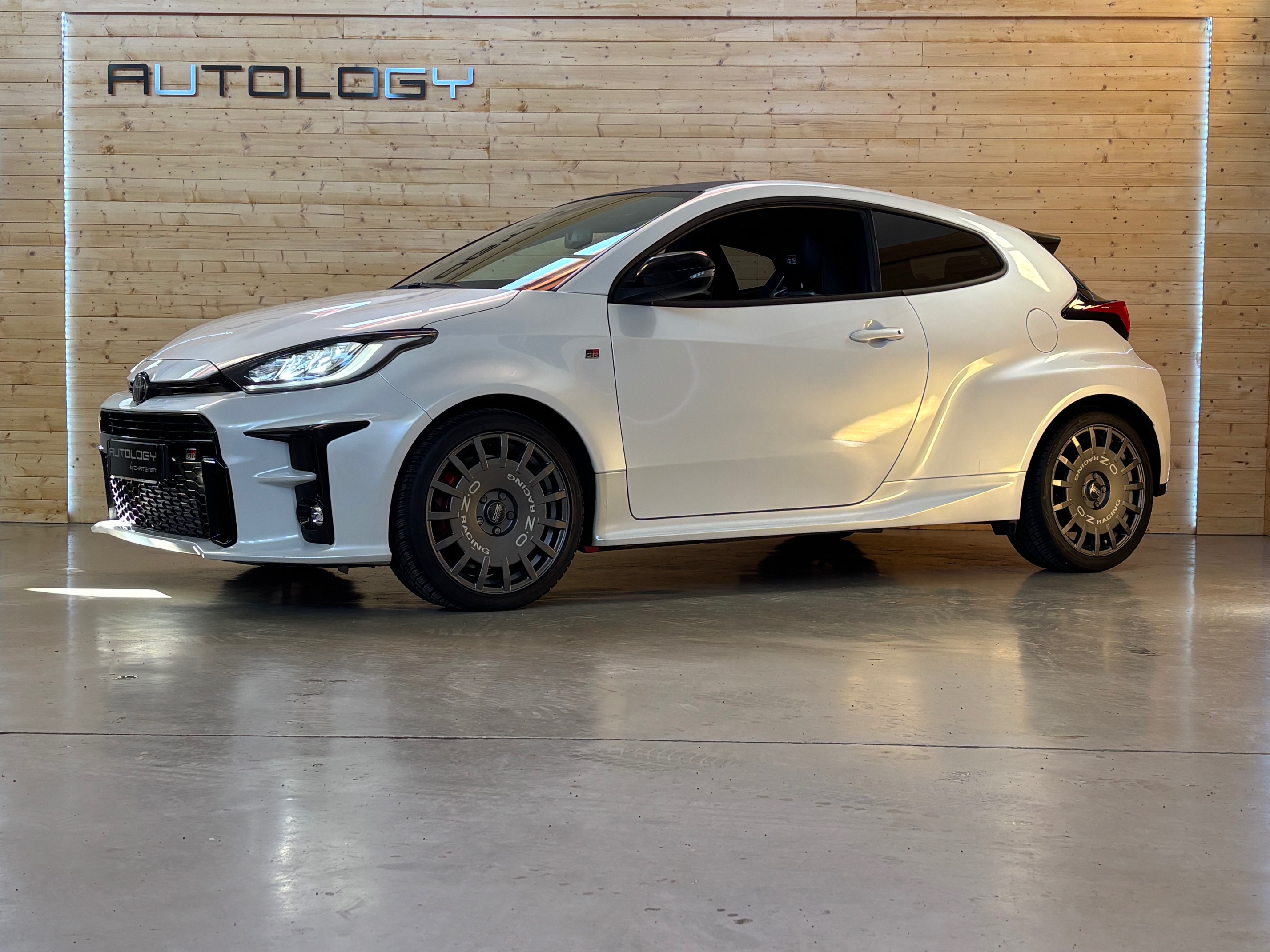 Présentée au salon de Tokyo le 10 janvier 2020, elle n’a plus grand chose à voir avec la Yaris de grande diffusion: quatre roues motrices grâce à un embrayage multidisques à commande électronique, 1.6 l 3 cylindres turbo à double injection de 261 ch, train arrière à double triangulation voilà pour la partie technique. Esthétiquement elle n’est disponible qu’en trois portes, ailes élargies, jantes spécifiques anthracite, vitres sans encadrement. Avec ses prises d’air avant élargies, elle semble vouloir dévorer l’asphalte des spéciales.